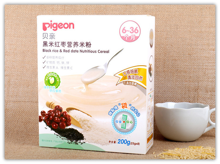 【一般贸易】贝亲 营养米粉 黑米红枣味 6-36个月 200g/盒