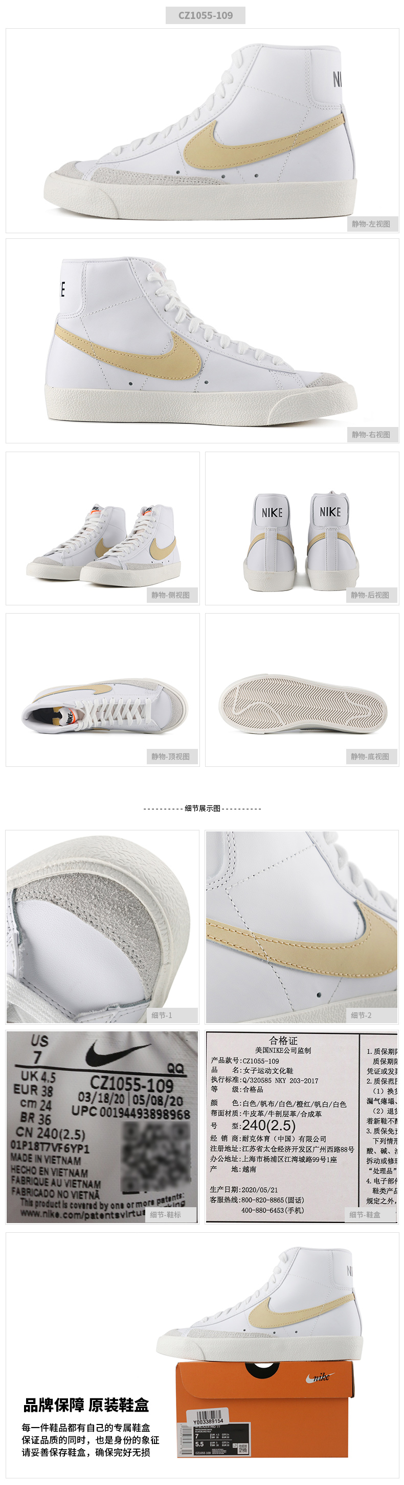 NIKE耐克女鞋 新款BLAZER MID '77中帮运动鞋休闲鞋板鞋CZ1055-109
