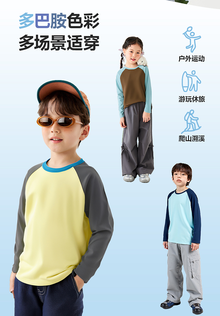 迷你巴拉男女童长袖T恤2025秋新品亲子一家三口速干上衣