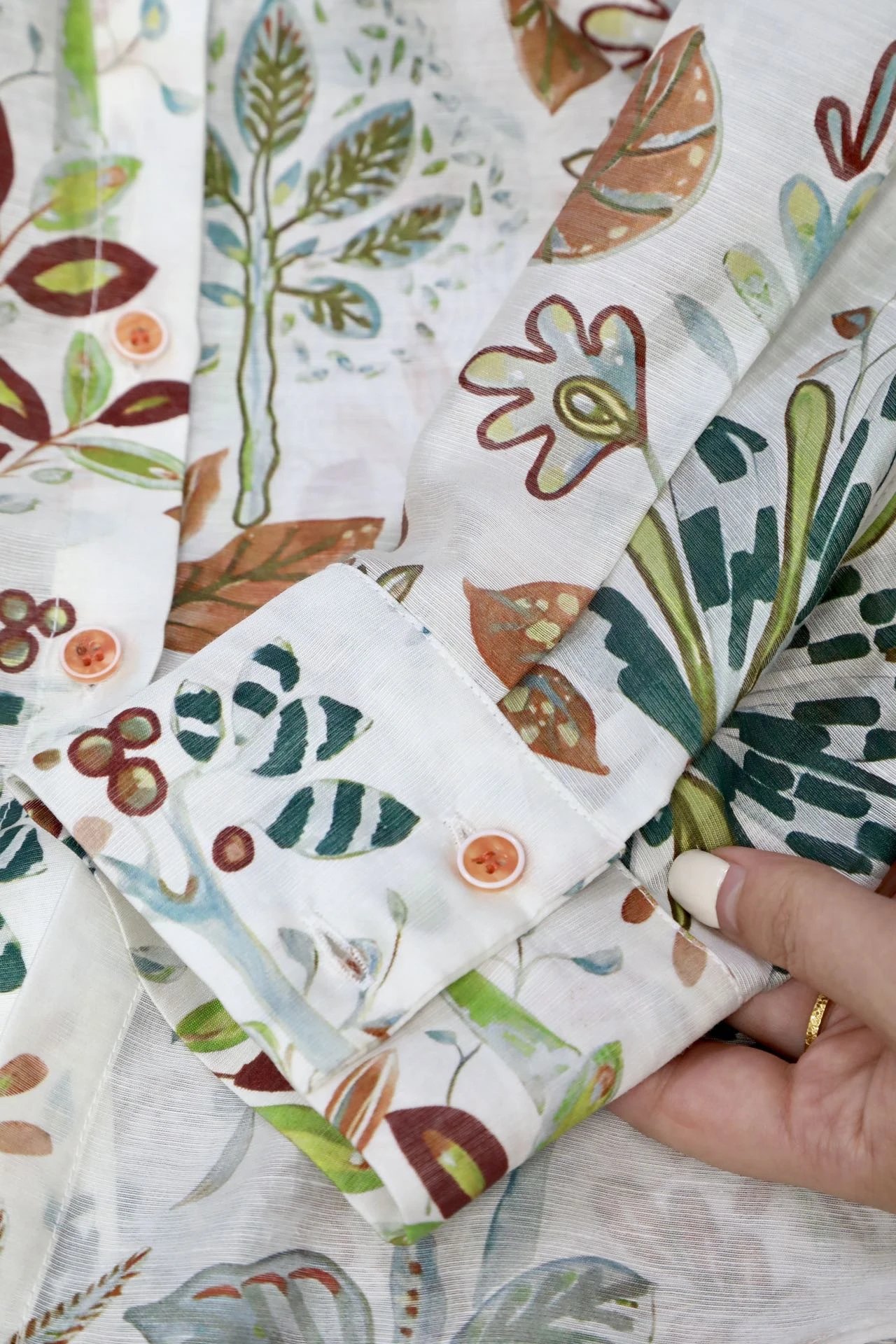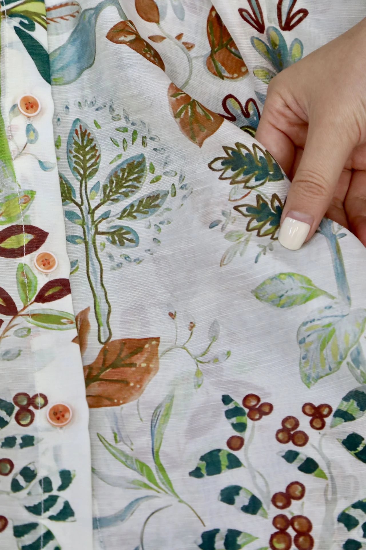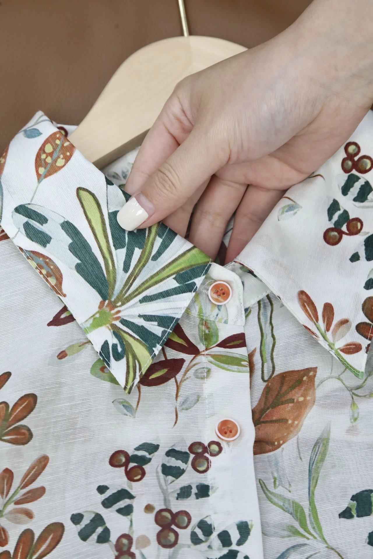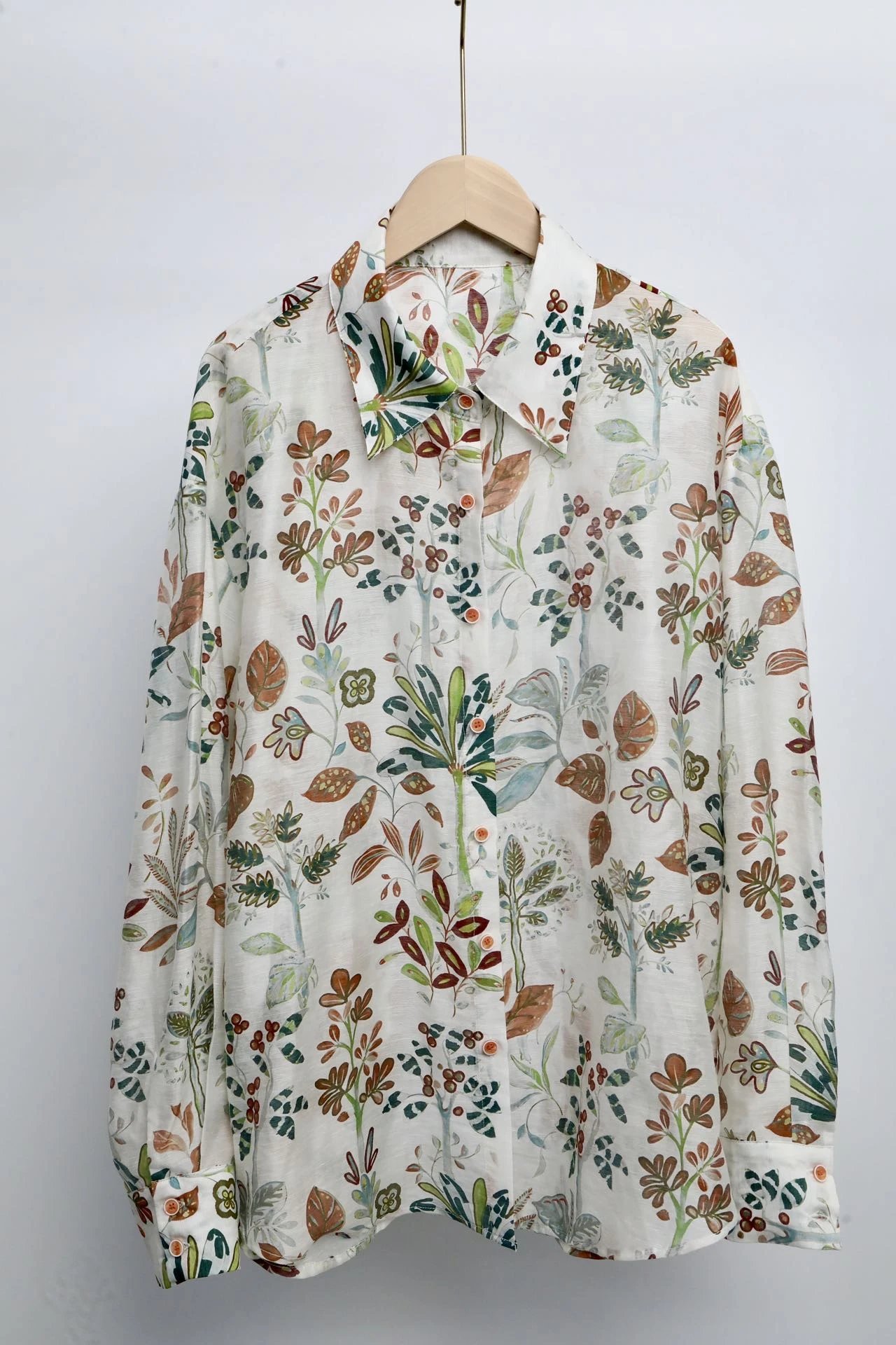 看这衬衫上的植物花卉图案