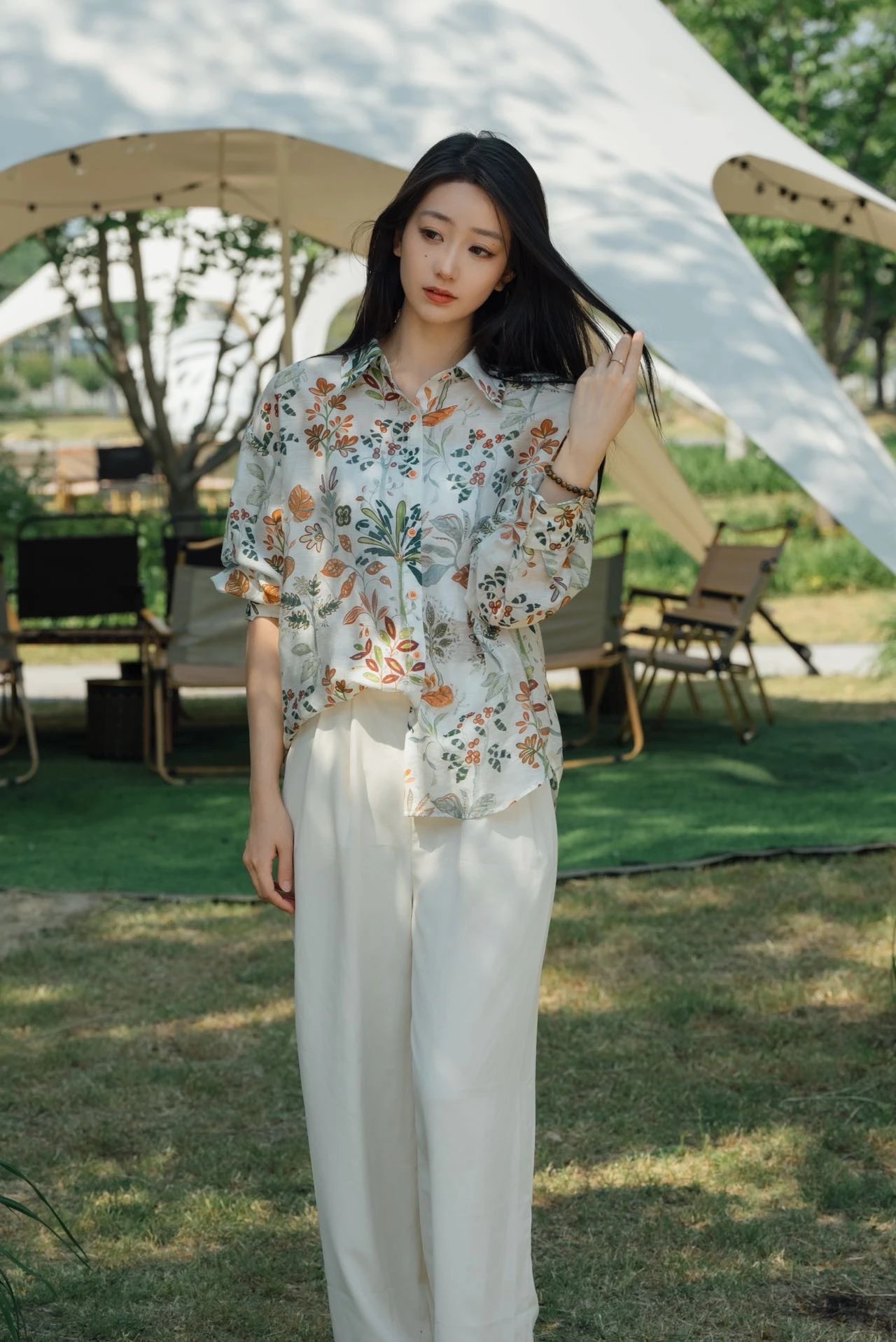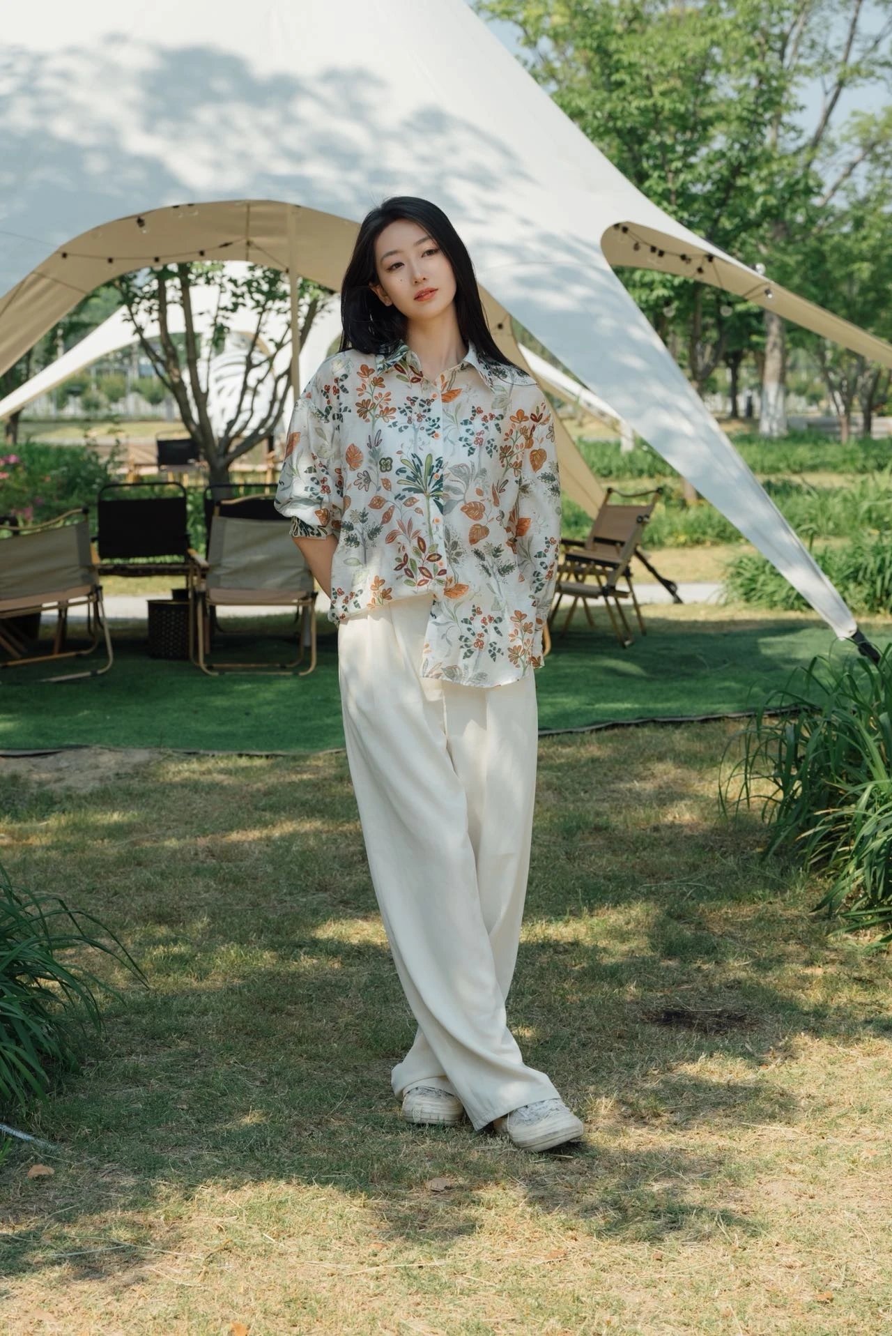 日常休闲、户外露营,挎上草编包或简约帆布包,呼应自然风格,搭配白色阔腿裤,简约大气,突出清爽感,或搭配牛仔短裤,休闲随性