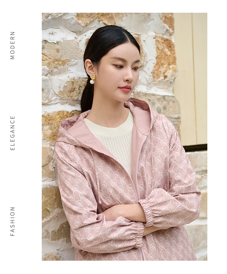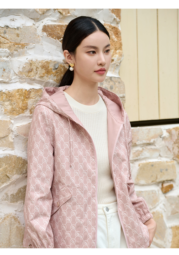 佐尔美秋装上新时尚几何印花风衣外套女M43FD19