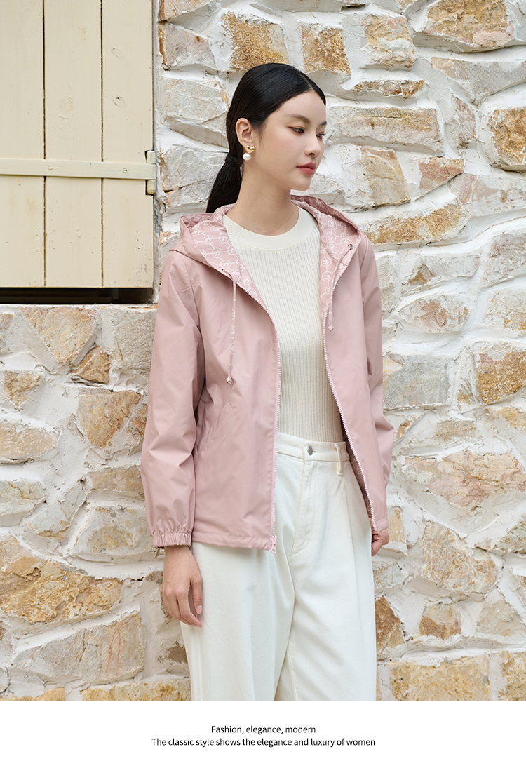 佐尔美春秋季新款时尚减龄收腰拉链休闲连帽中长风衣女式E01FZ09