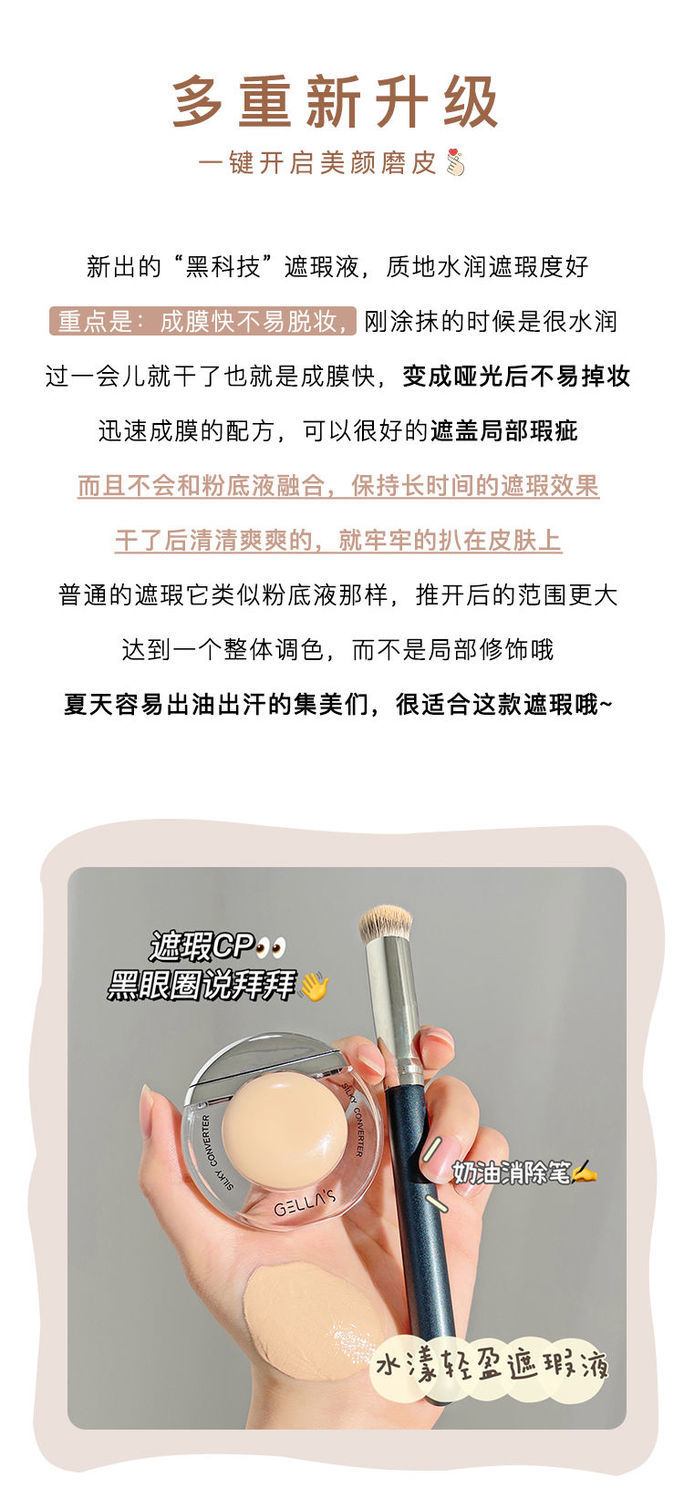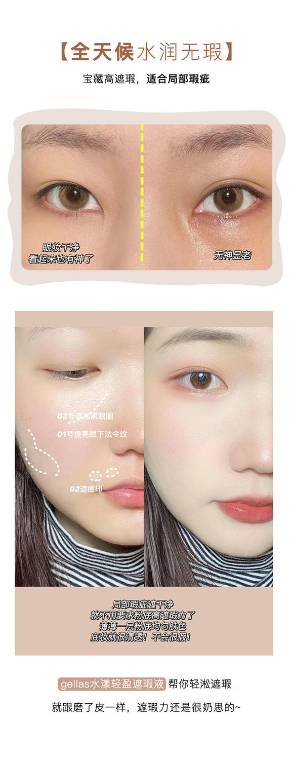 【爆款超低价预售 急单慎拍】Gella‘s水漾轻盈遮瑕液痘印巨遮盖斑点脸部痘痘遮暇官方纹身黑眼