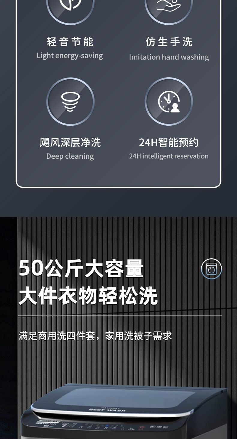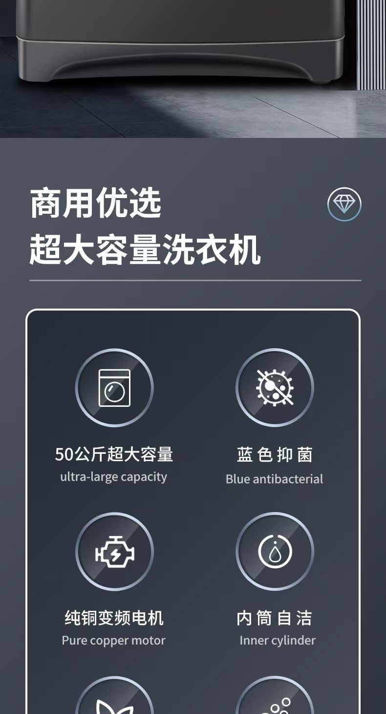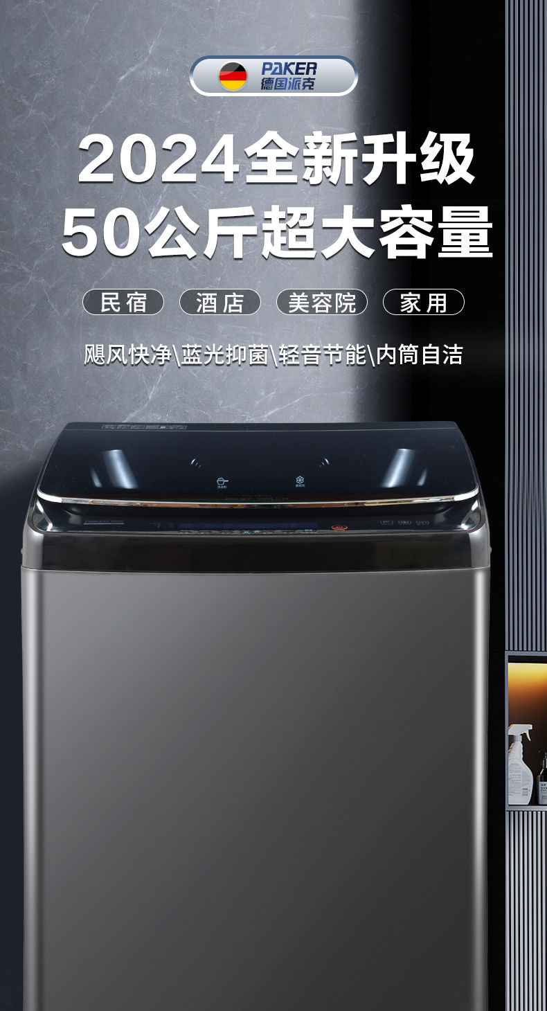 德国派克新品50公斤波轮洗衣机全自动商用大容量宾馆酒店家用 紫光+风干