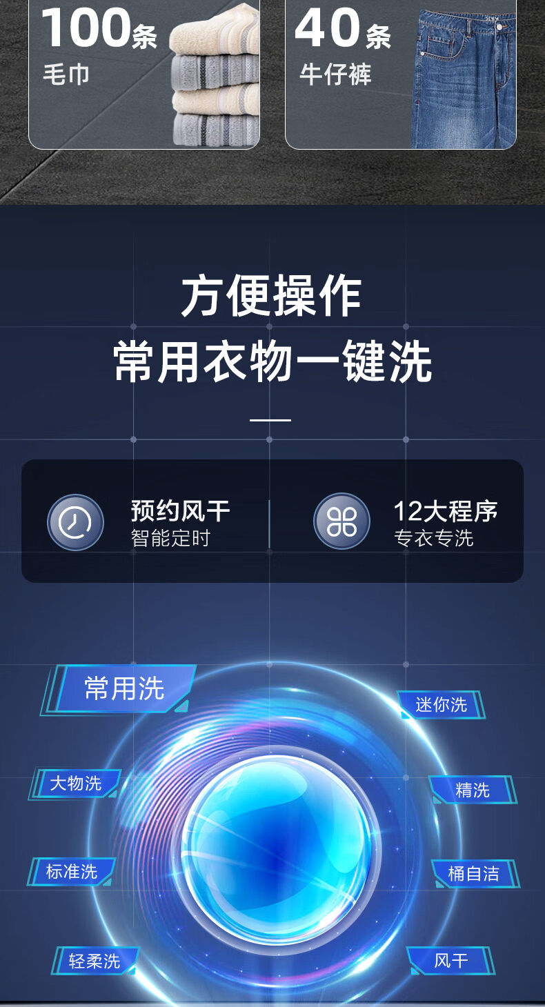 海尔出品统帅10公斤滚筒洗烘一体全自动变频家用大容量洗衣机 JQG100-B11W