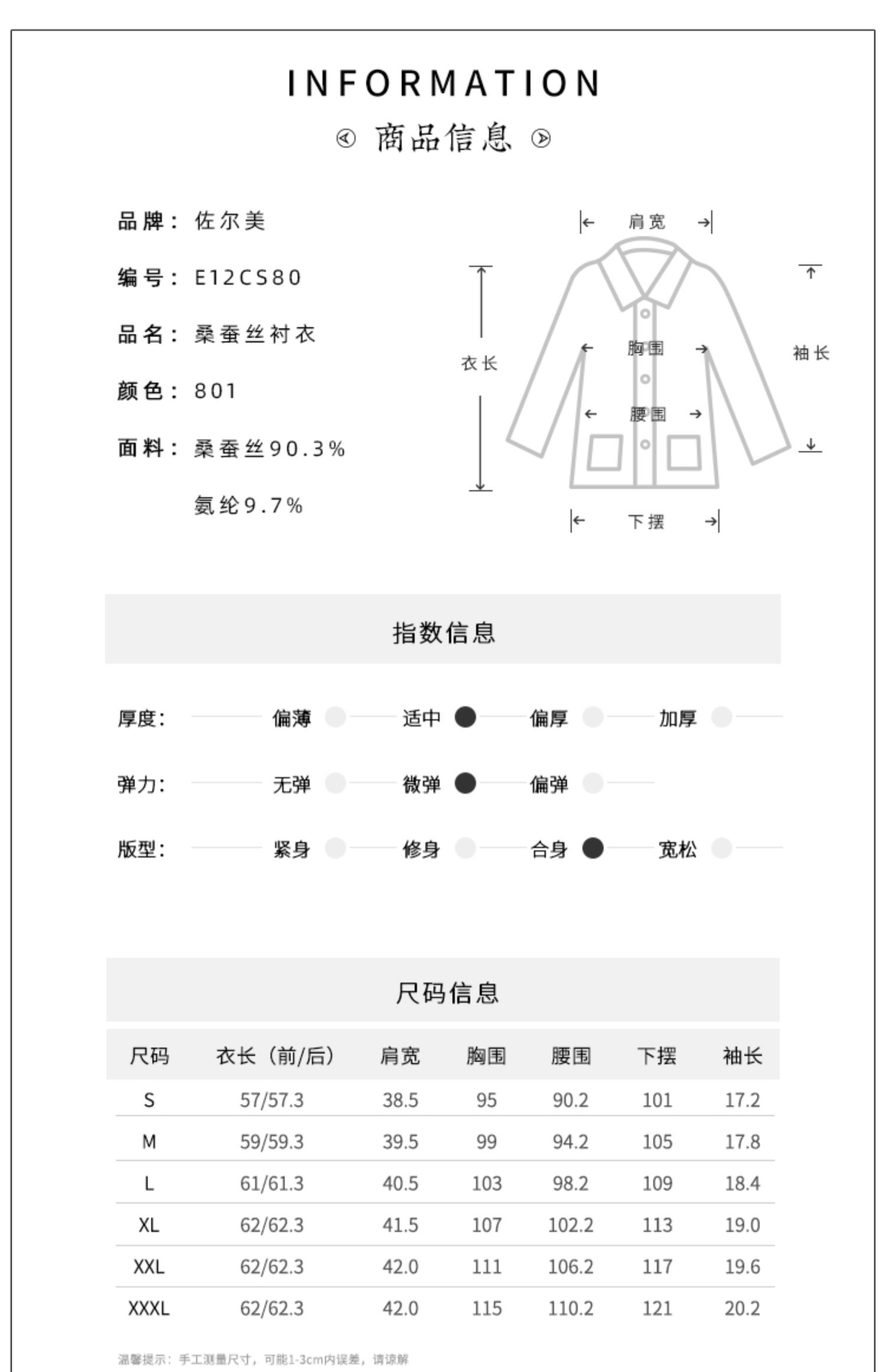 佐尔美夏季新款 桑蚕丝真丝弹力双绉衬衣女E12CS80