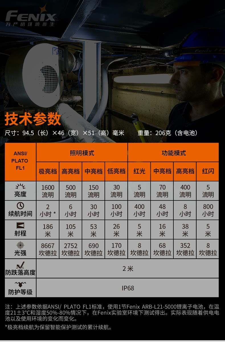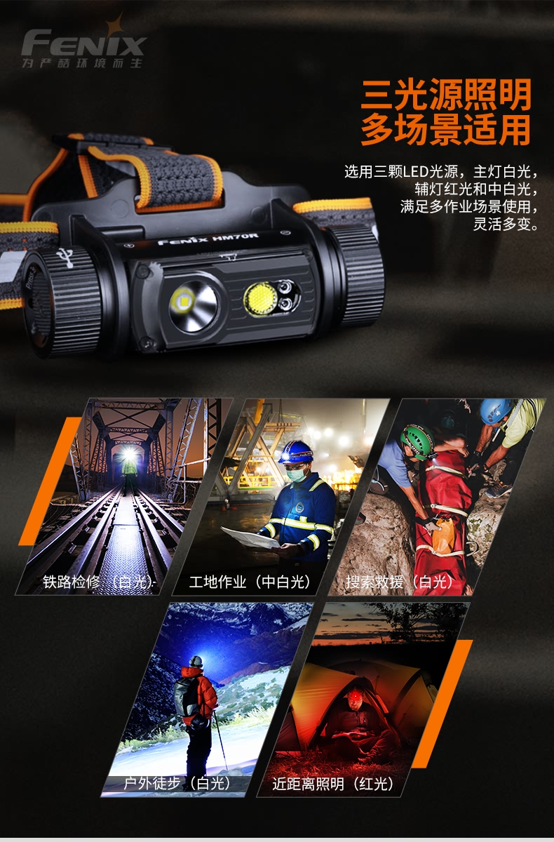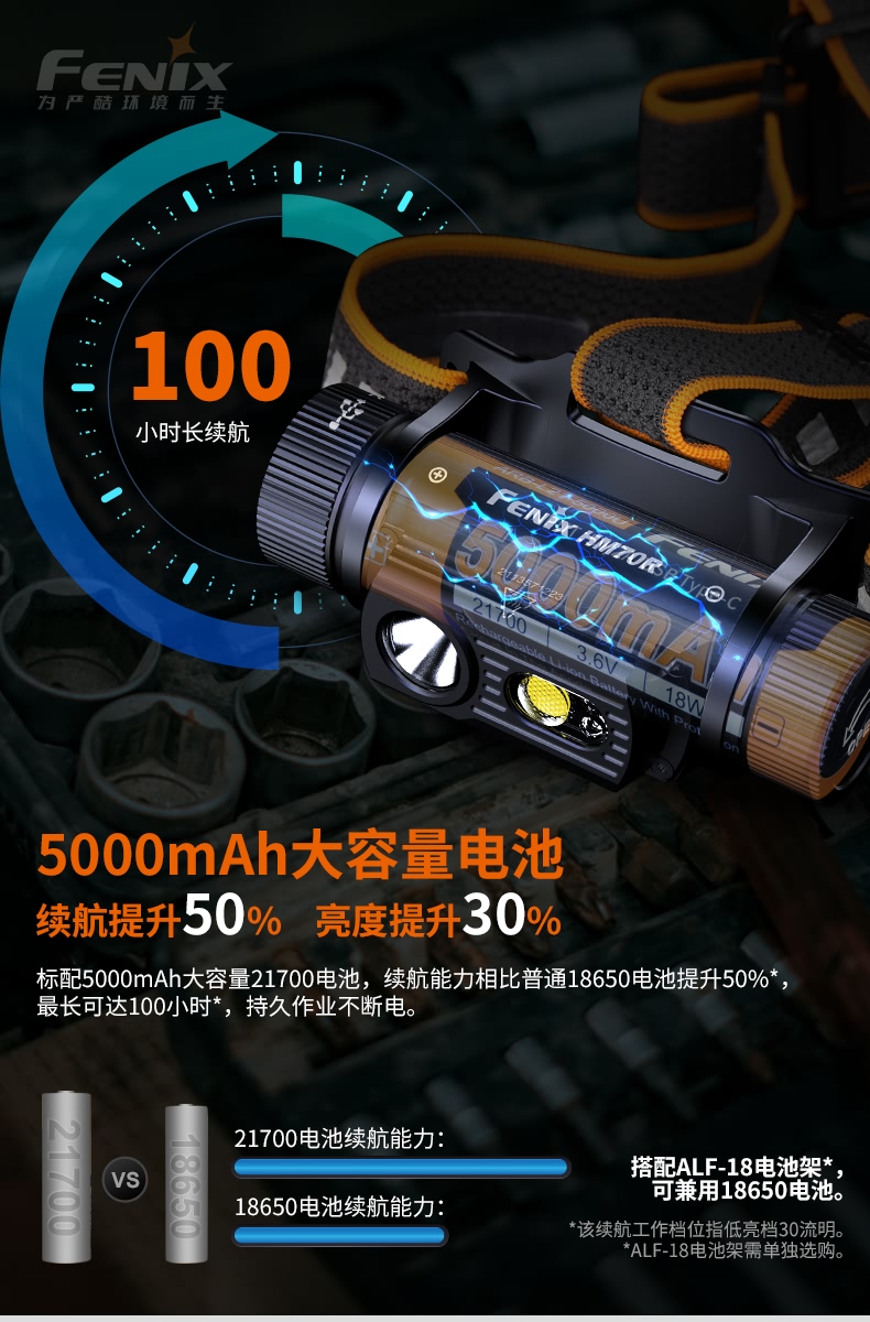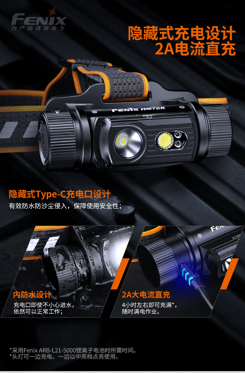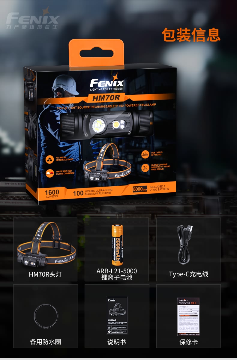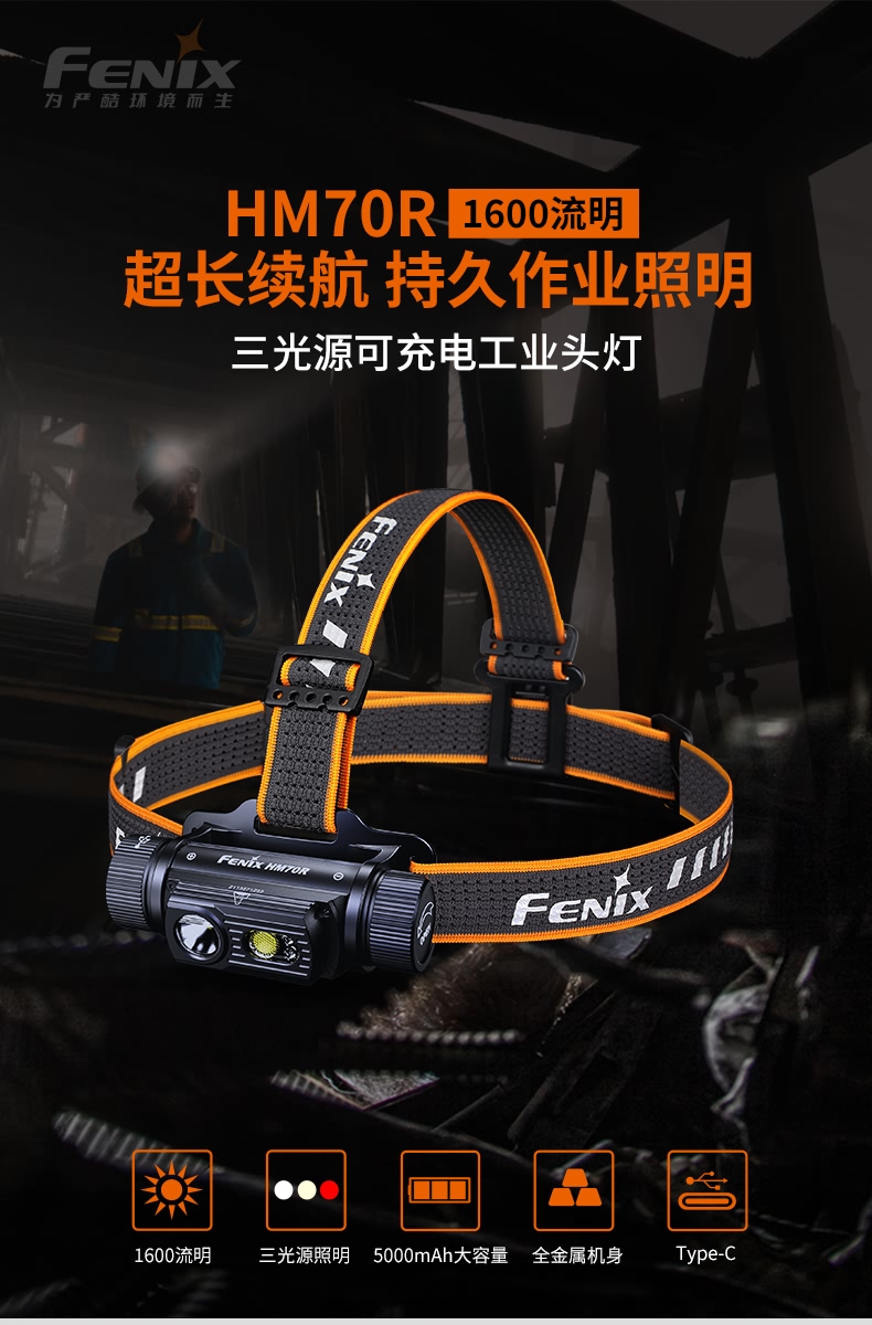 Fenix菲尼克斯 HM70R头灯强光充电超亮21700电池长续航头戴工业灯