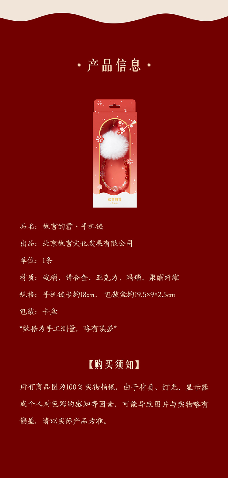 【故宫饰品】故宫雪手机挂绳手腕款手机链文创圣诞新年本命年礼物女