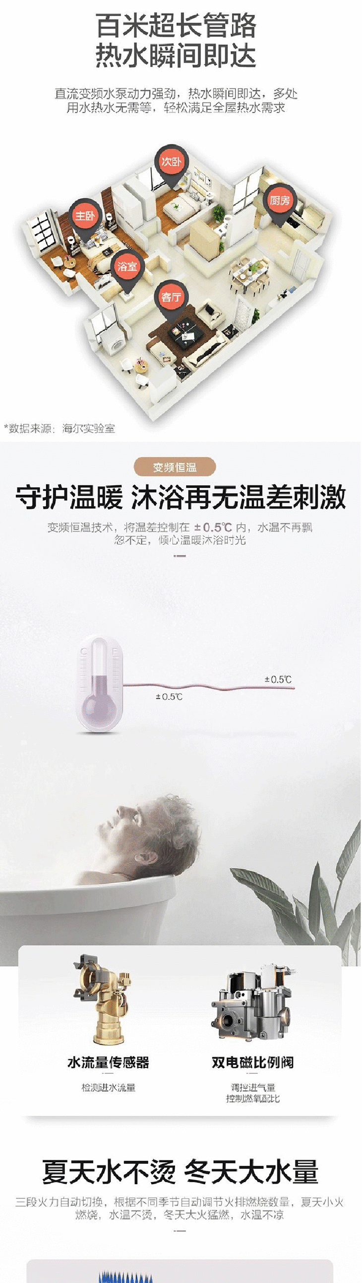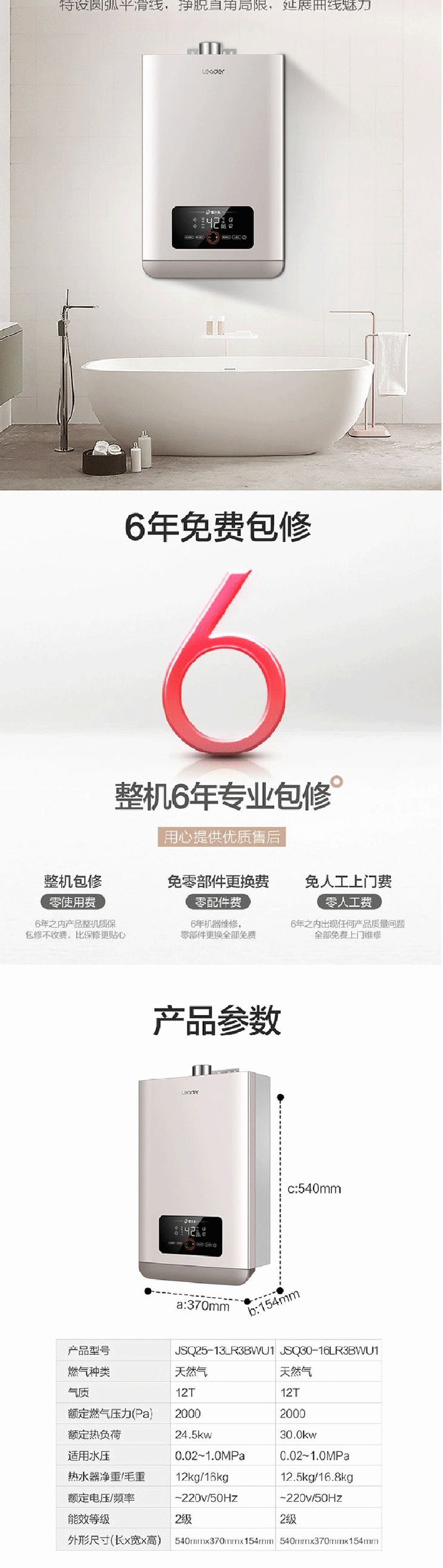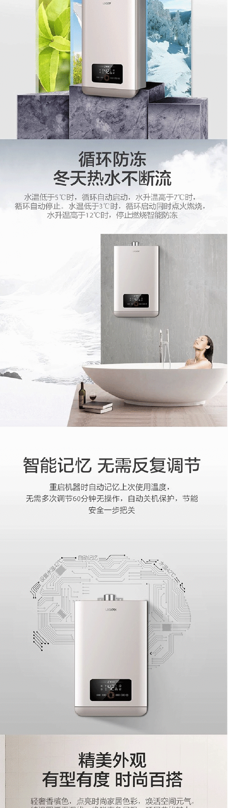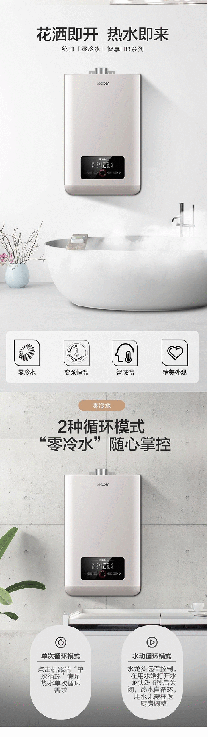 海尔Leader 13升 天燃气热水器 两管零冷水 智能WIFI控制 带预约 JSQ25-13LR3BWU1