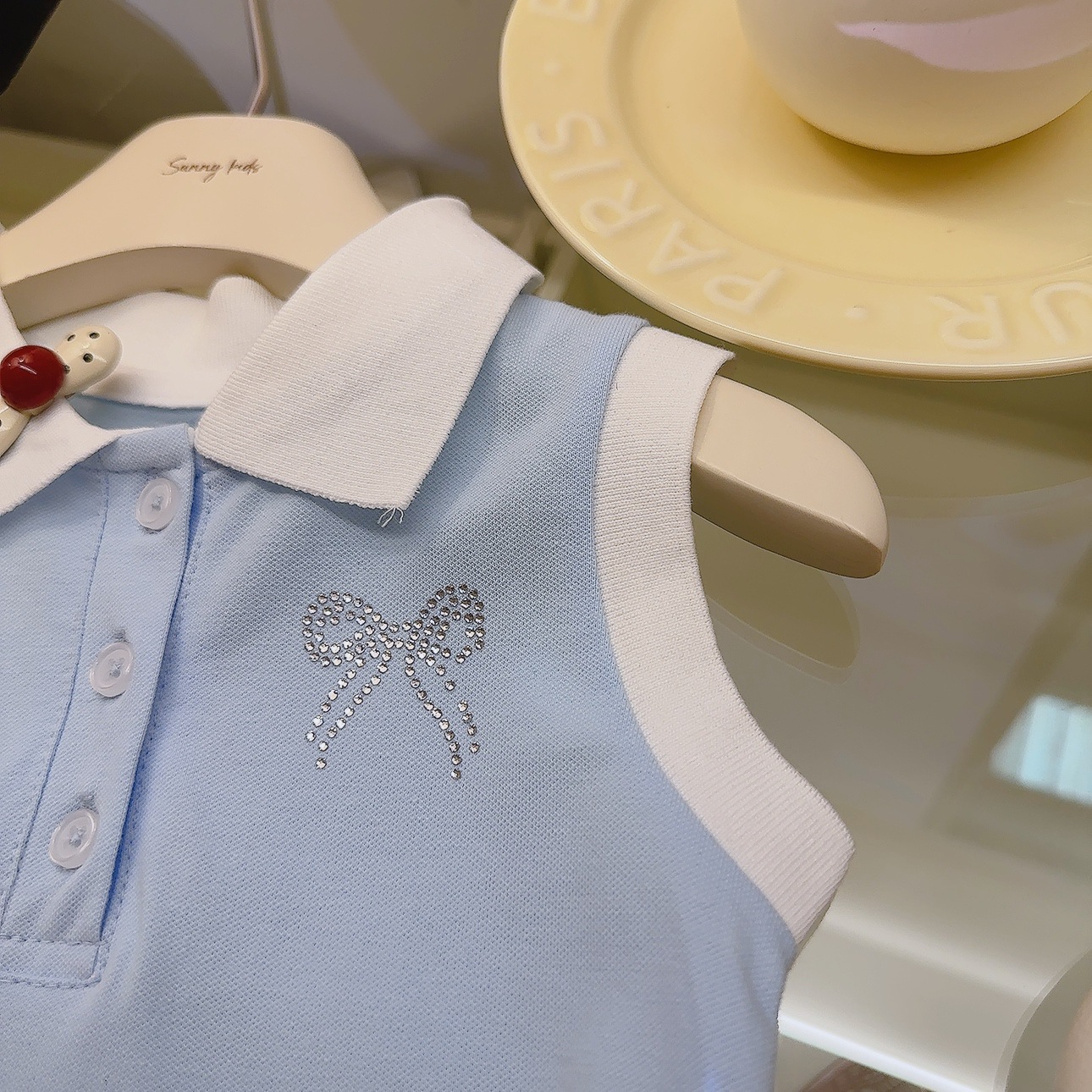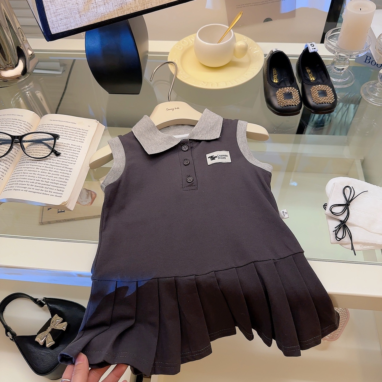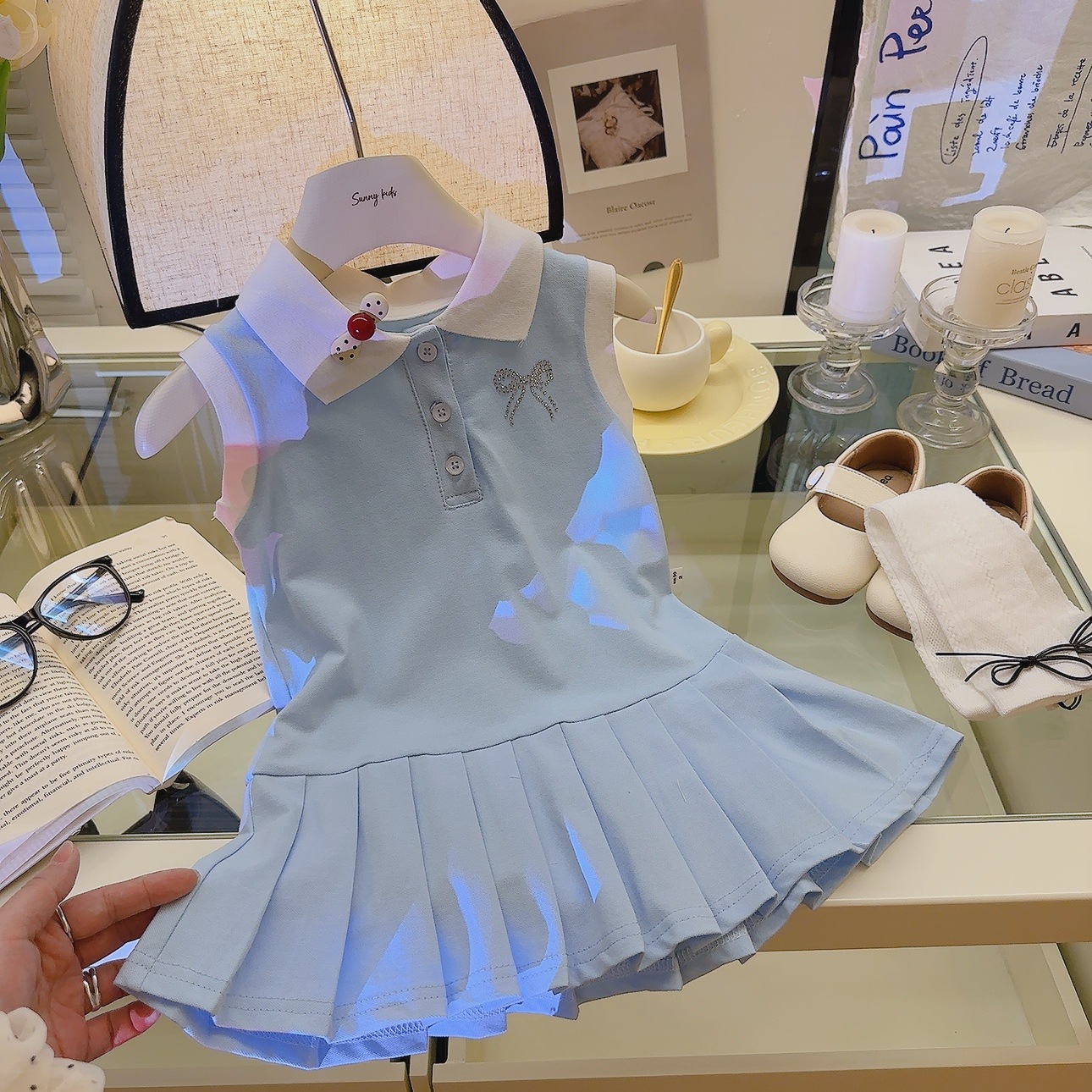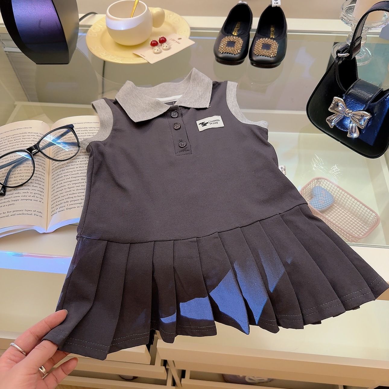 【纯棉亲肤!耐洗耐穿】学院风连衣裙女童休闲POLO领百褶裙公主连衣裙背心裙纯棉。xb