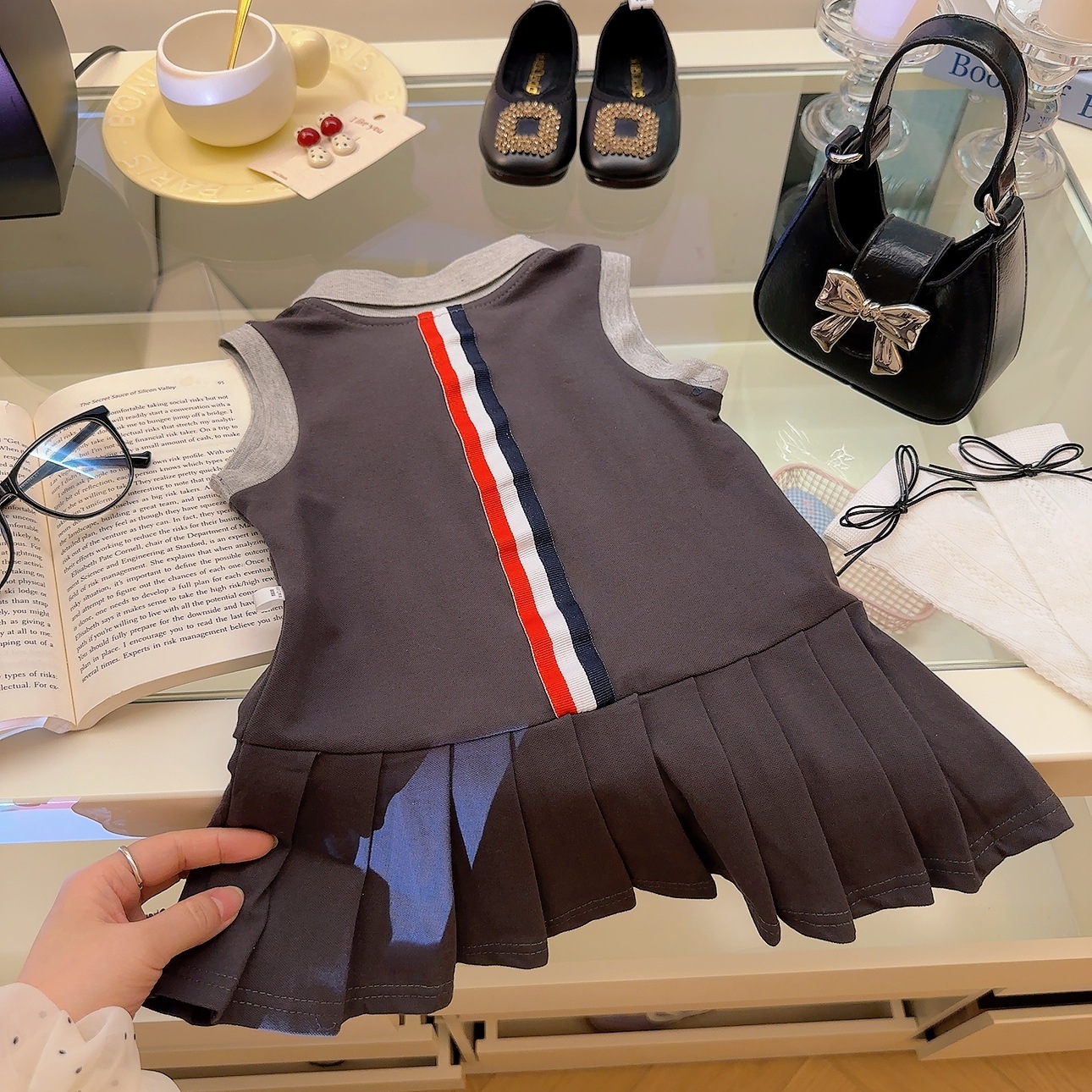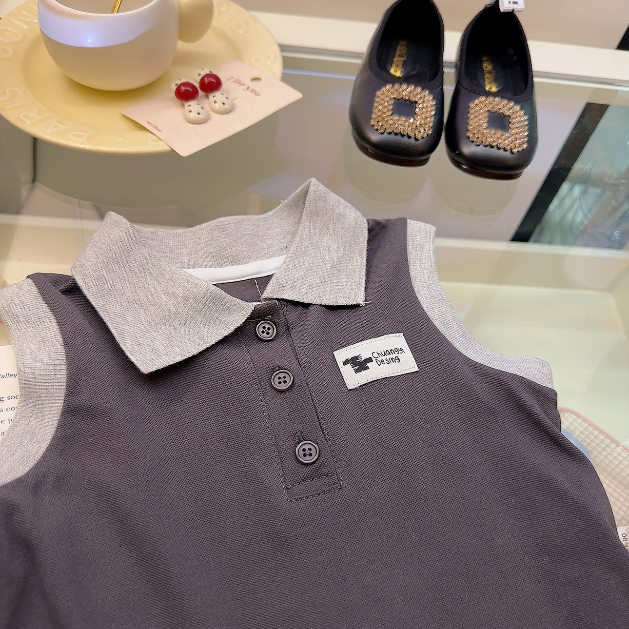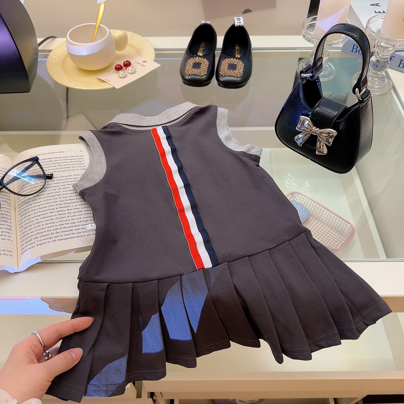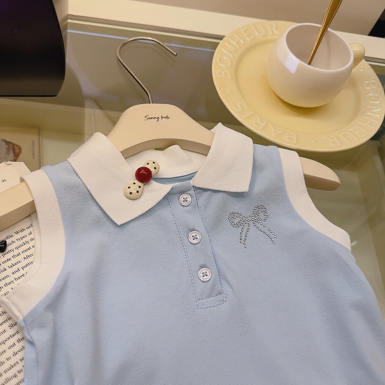 【纯棉亲肤!耐洗耐穿】学院风连衣裙女童休闲POLO领百褶裙公主连衣裙背心裙纯棉。xb
