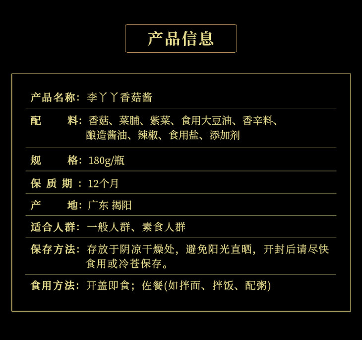 素食庄园李丫丫素香菇酱素食佛家纯素正品调味酱香菇拌面拌饭酱
