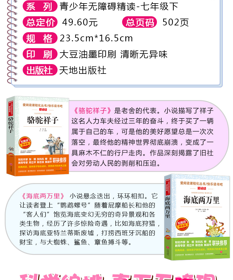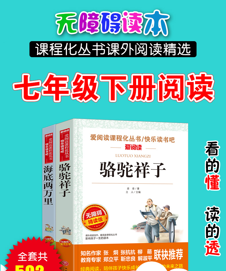 爱阅读 快乐读书吧全2册任选 七年级下骆驼祥子海底两万里 无障碍阅读导读版 7年级初中生课外书籍青少年版经典中学生课外读物原著