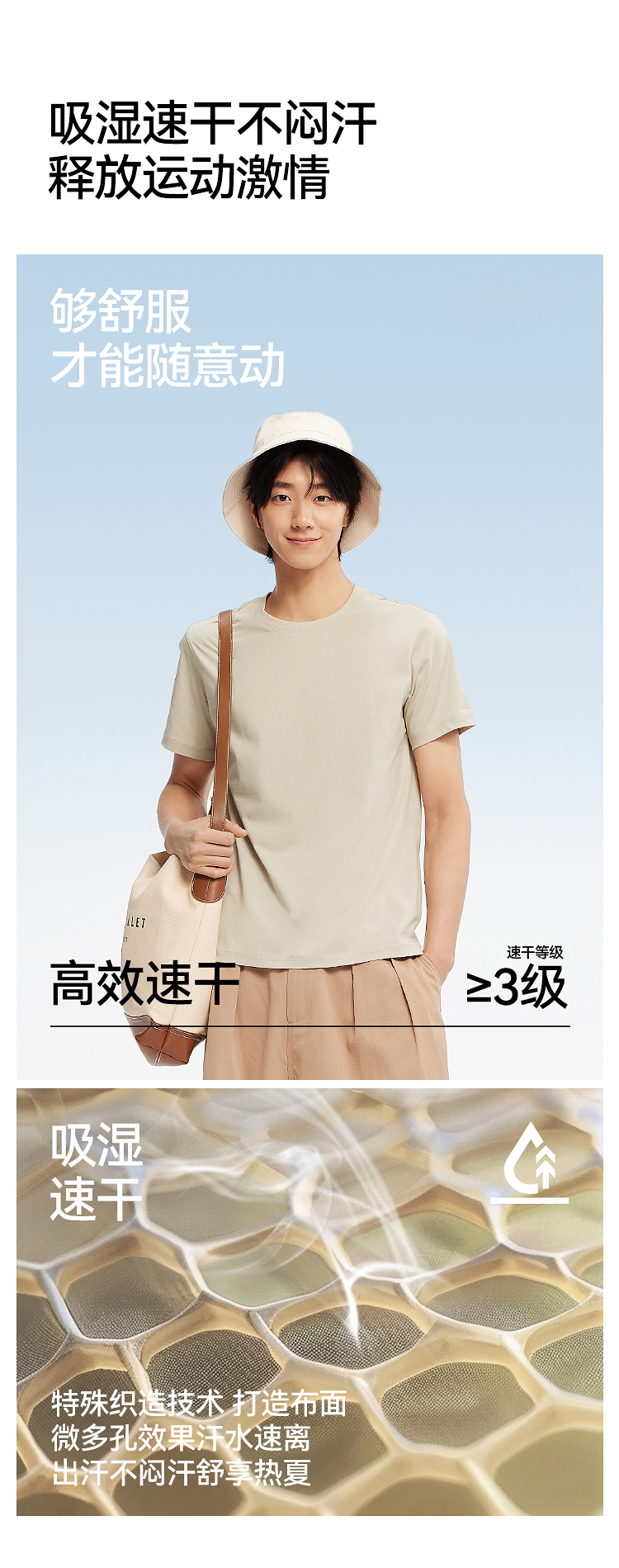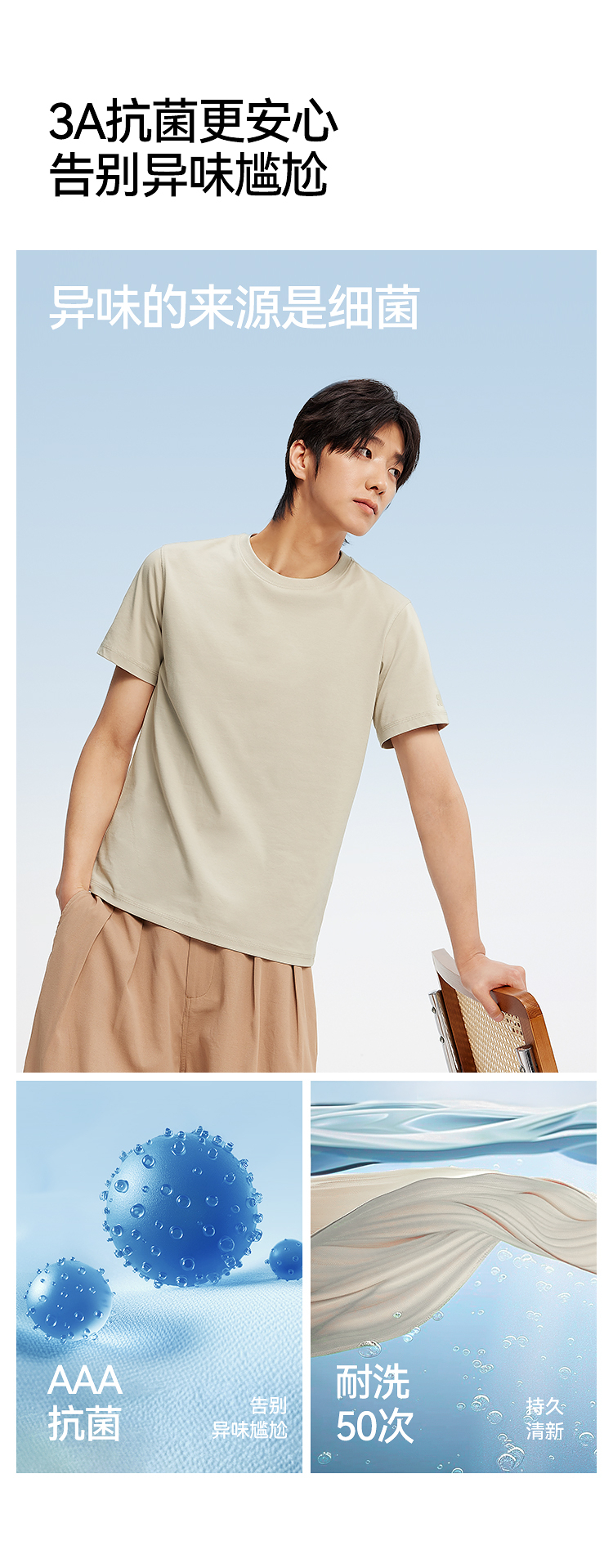【爆品主推】凉感T|森马短袖T恤男吸湿速干抑菌白t2025夏新款纯色百搭上衣遮热