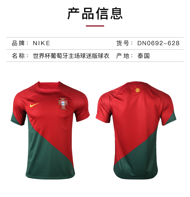 NIKE/耐克 FPF M NK DF STAD JSY SS HM 2022世界杯 葡萄牙主场球衣 球迷版