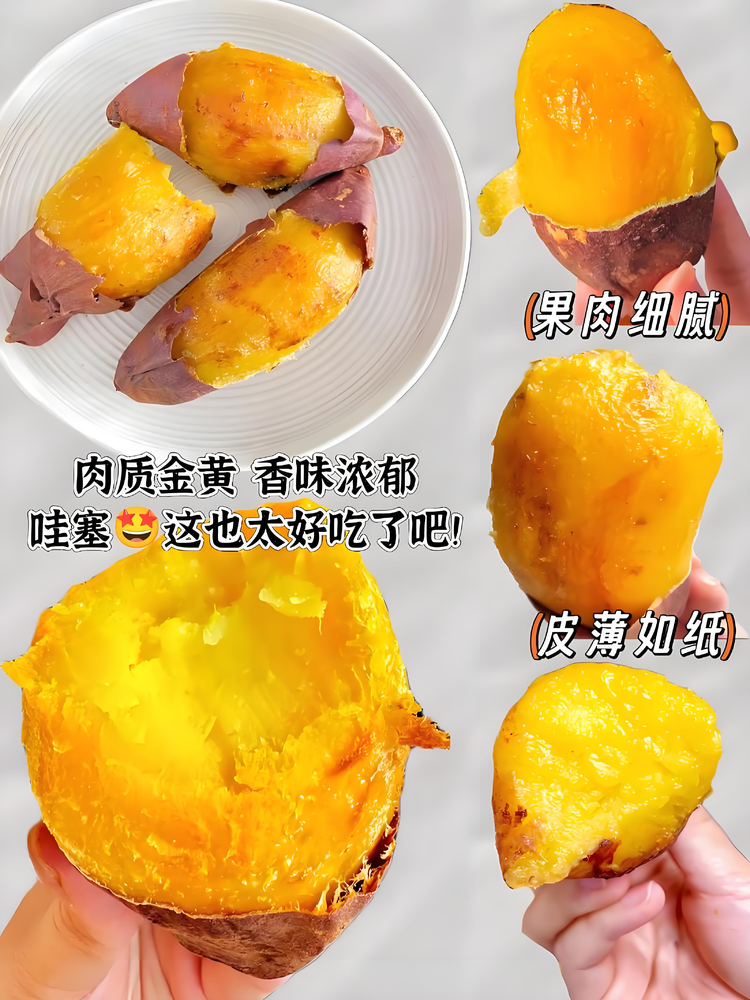 红薯界的“榴莲控”——榴莲蜜薯!榆林有机生态养殖的宝藏红薯,表皮薄如纸,果肉黄金似榴莲般绵密,生的时候甜度已经高达30度,烤制后甜度甚至突破40-50度。