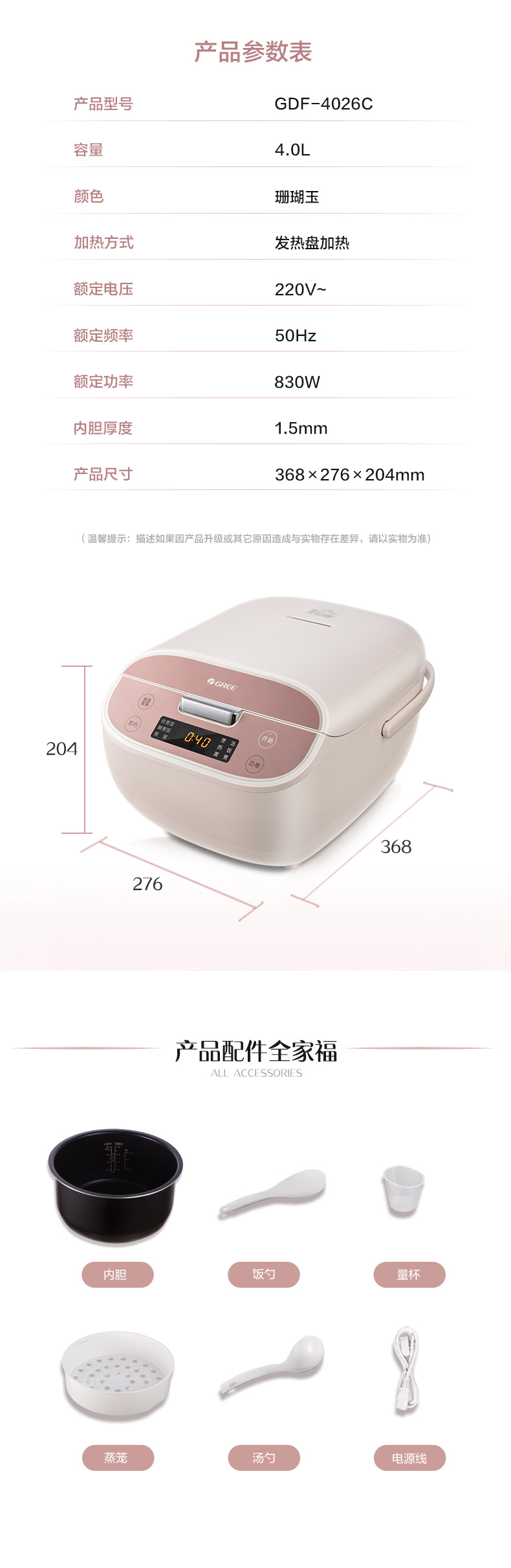 格力·智能电饭煲  GDF-4026C 珊瑚玉 商品图0