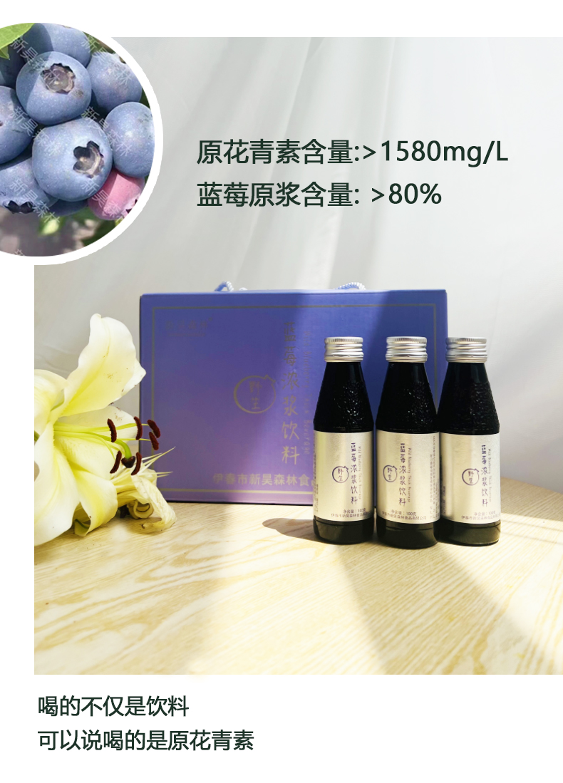 【野生蓝莓原浆】富含花青素 口味浓郁 养颜又护眼 缓解眼疲劳 配料表干净 酸甜口感 冰镇口感更佳
