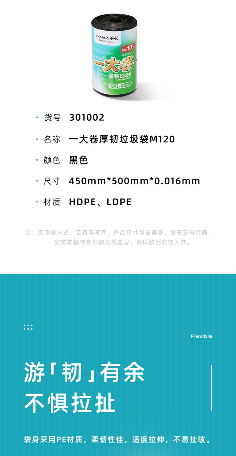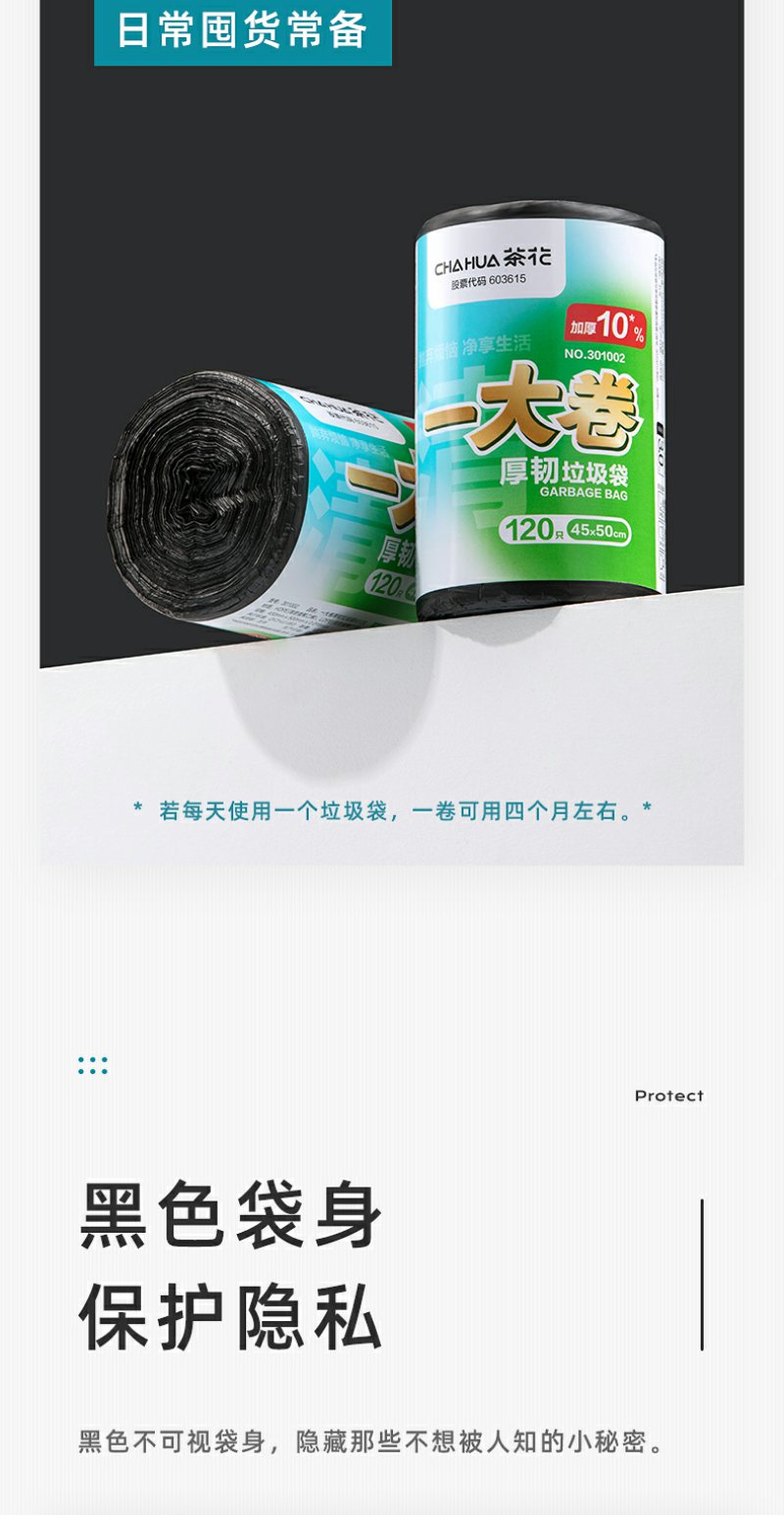 【茶花】垃圾袋厚韧平口背心款垃圾袋量贩装