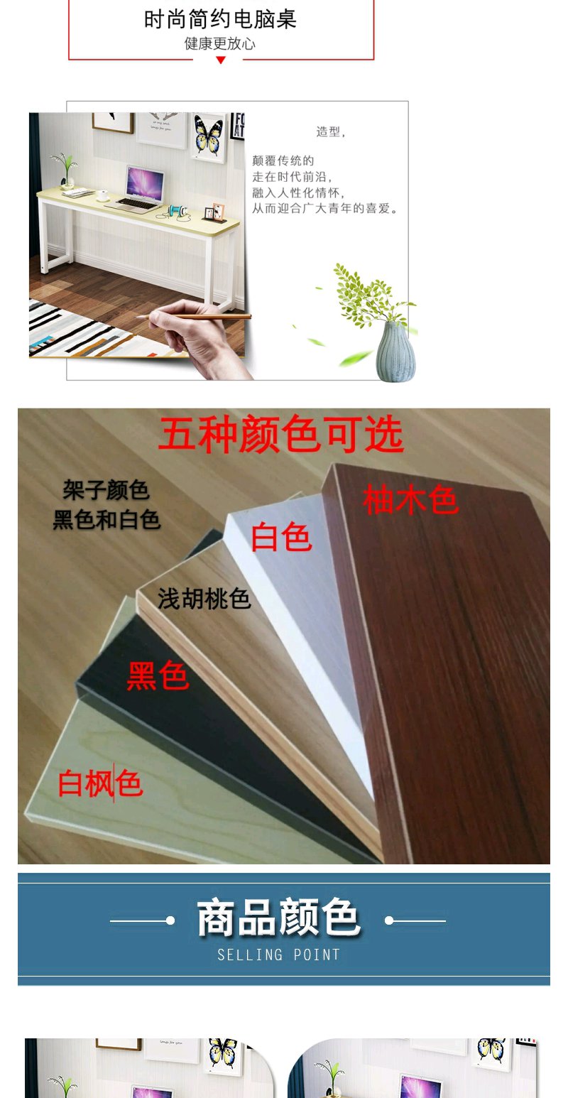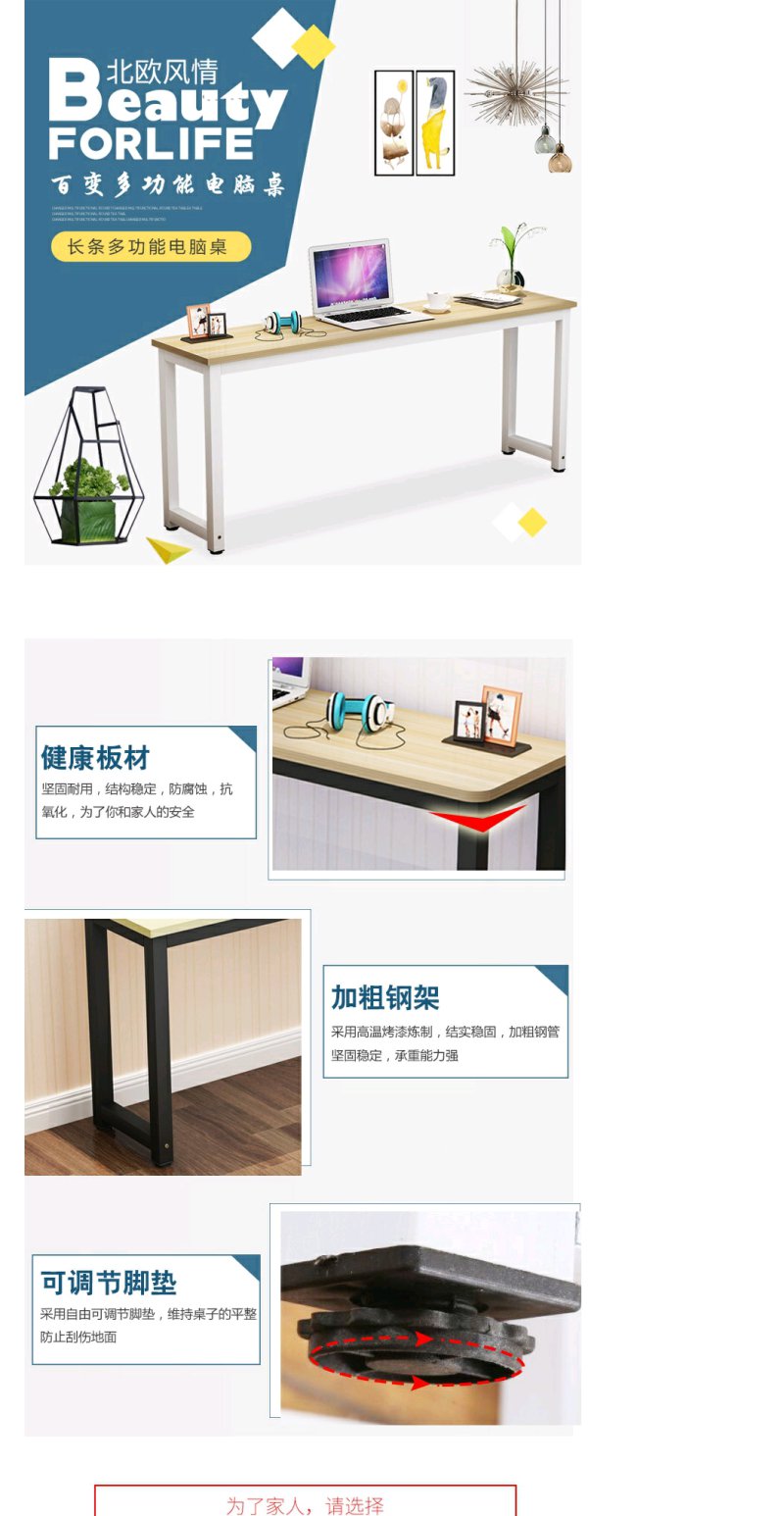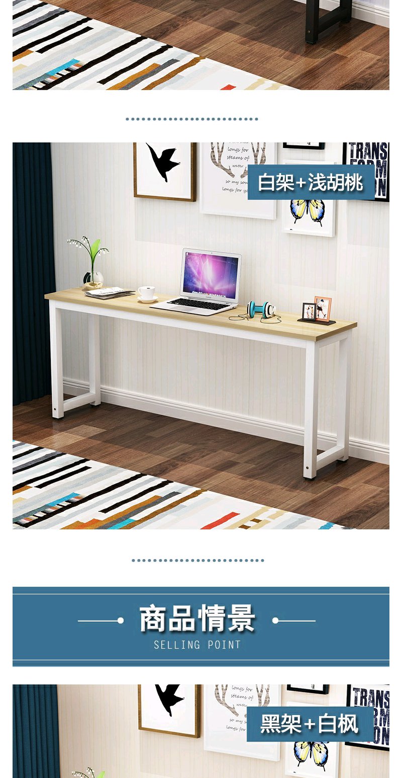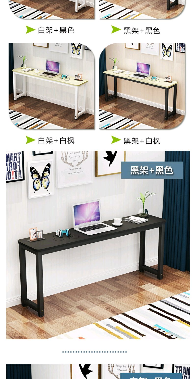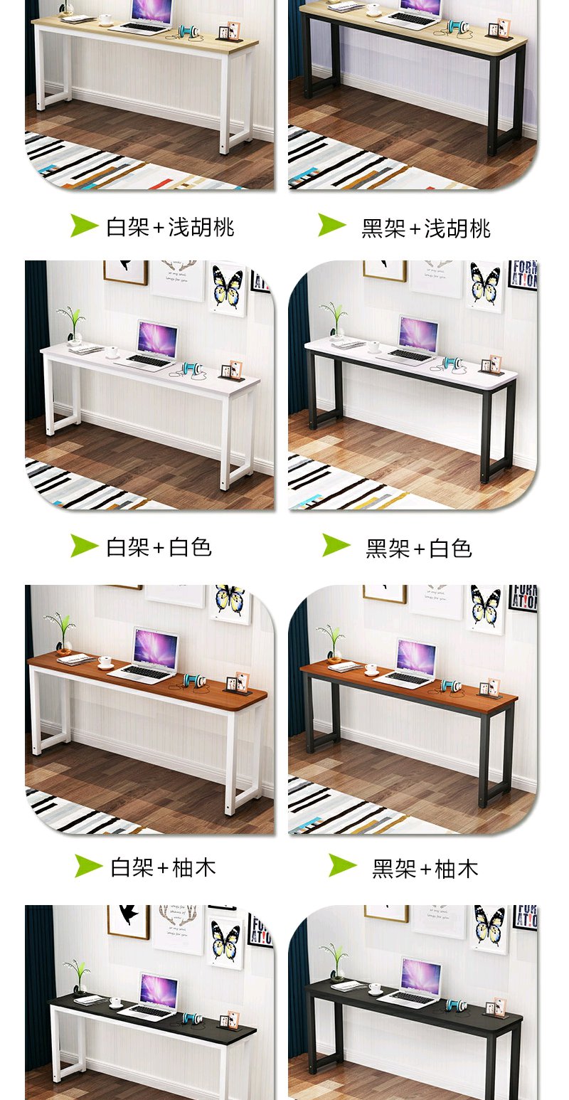 圆角家用电脑长条桌办公桌靠墙边窄桌学习书桌卧室长方形桌子定做