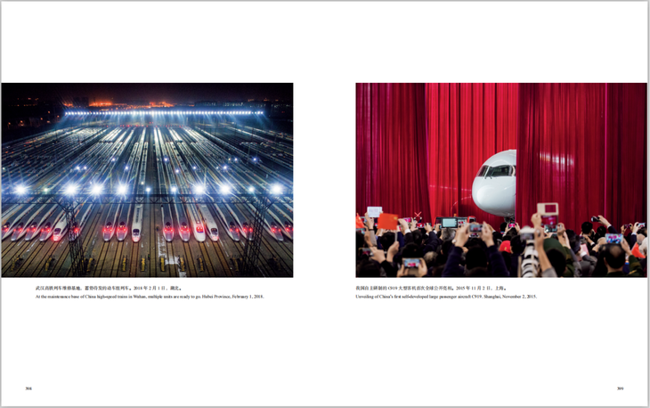 2019年版的大型画册《中国》,其开本和版式均仿照1959年版《中国》,但在内容、体例上力争更为全面、生动,以摄影和图像文献为载体展现建党与新中国成立的重大事件,也是以艺术作品的感性力量呈现出党的发展历程、精神气质和实践经验。