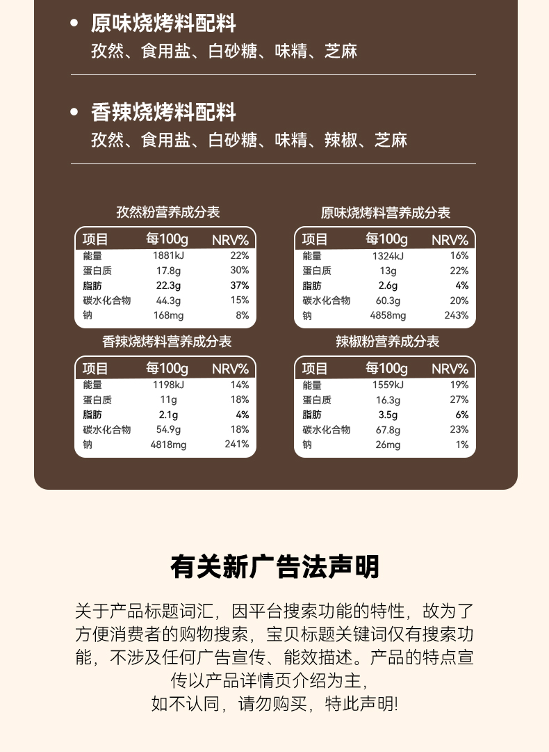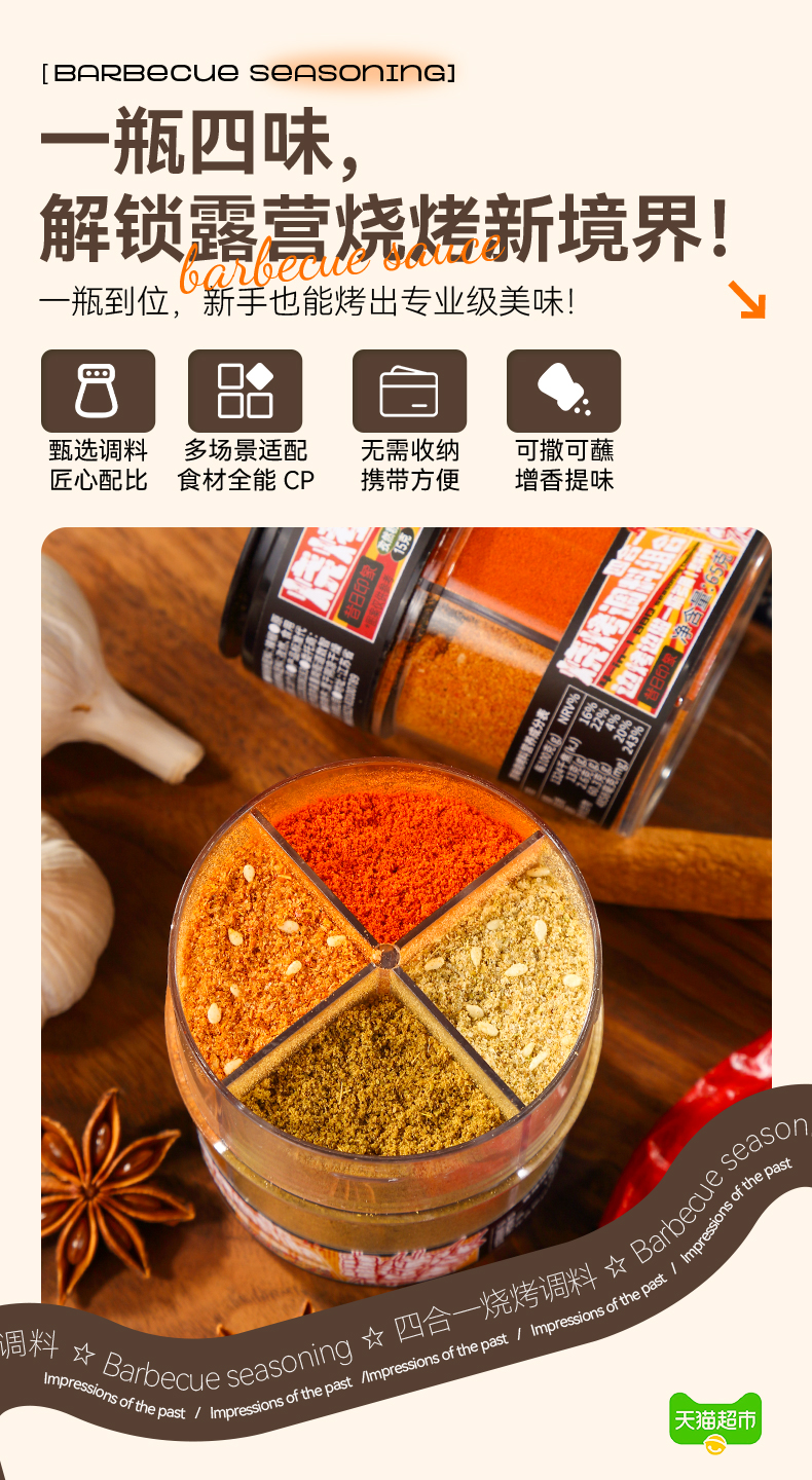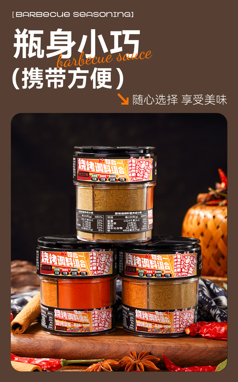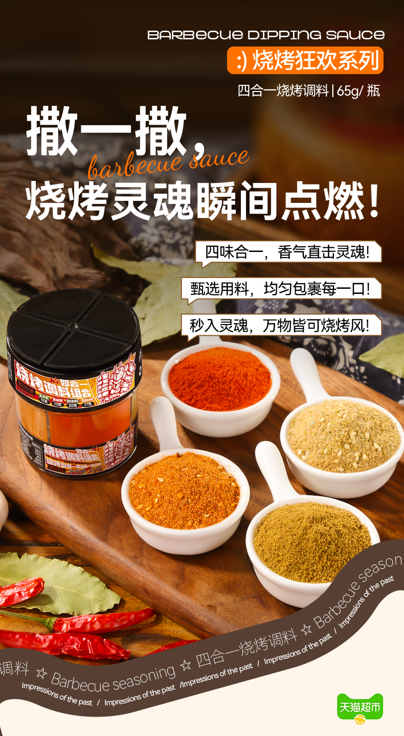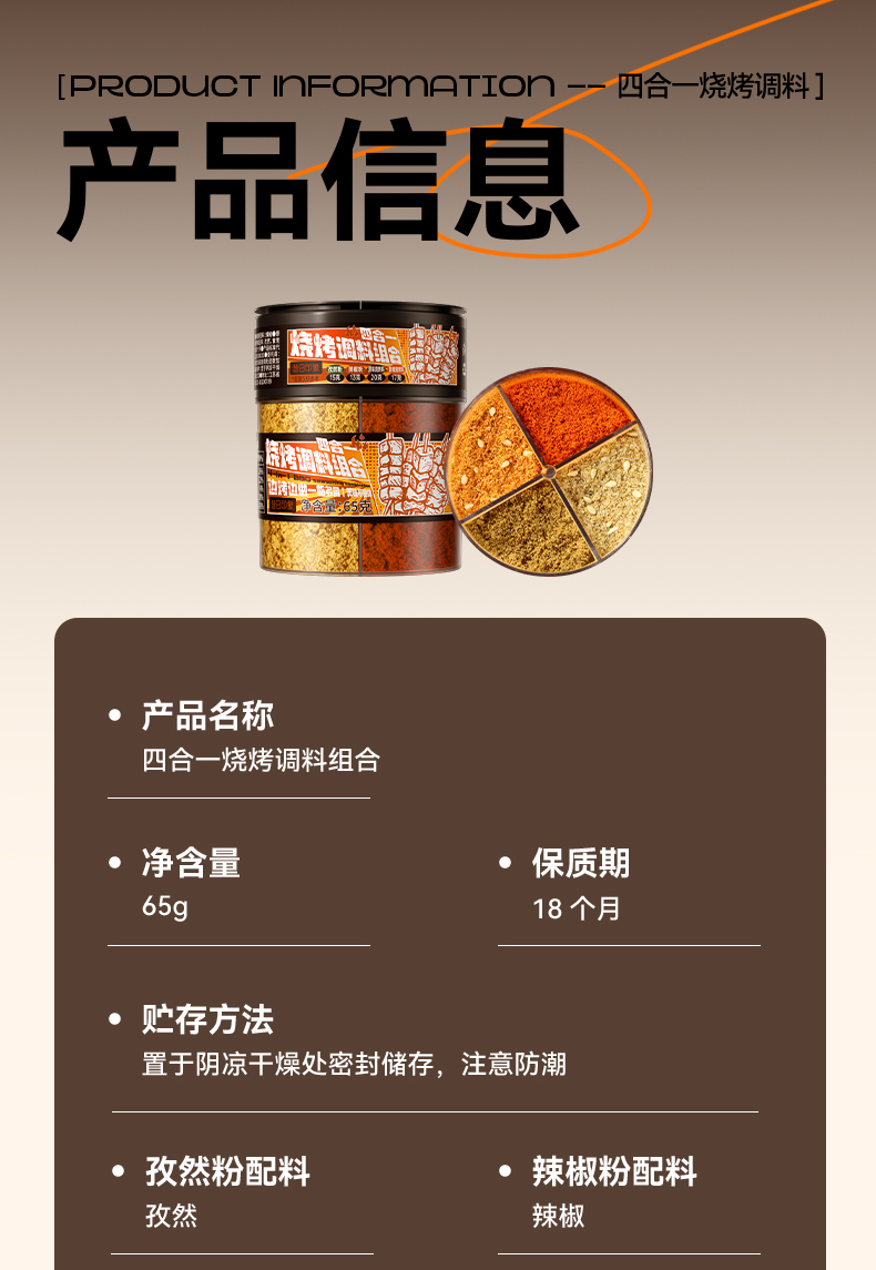 烧烤调料撒料四合一专用神器孜然粉芝麻辣椒粉瓶装65g家用烤肉