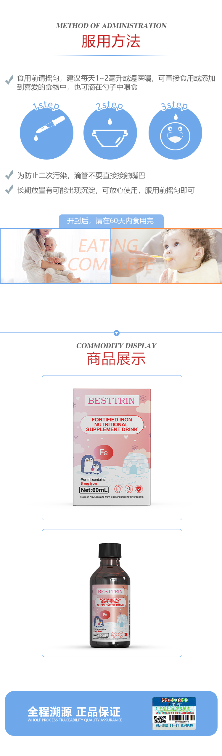 BEISIREN贝塞伦 甘氨酸螯合铁滴剂60ml