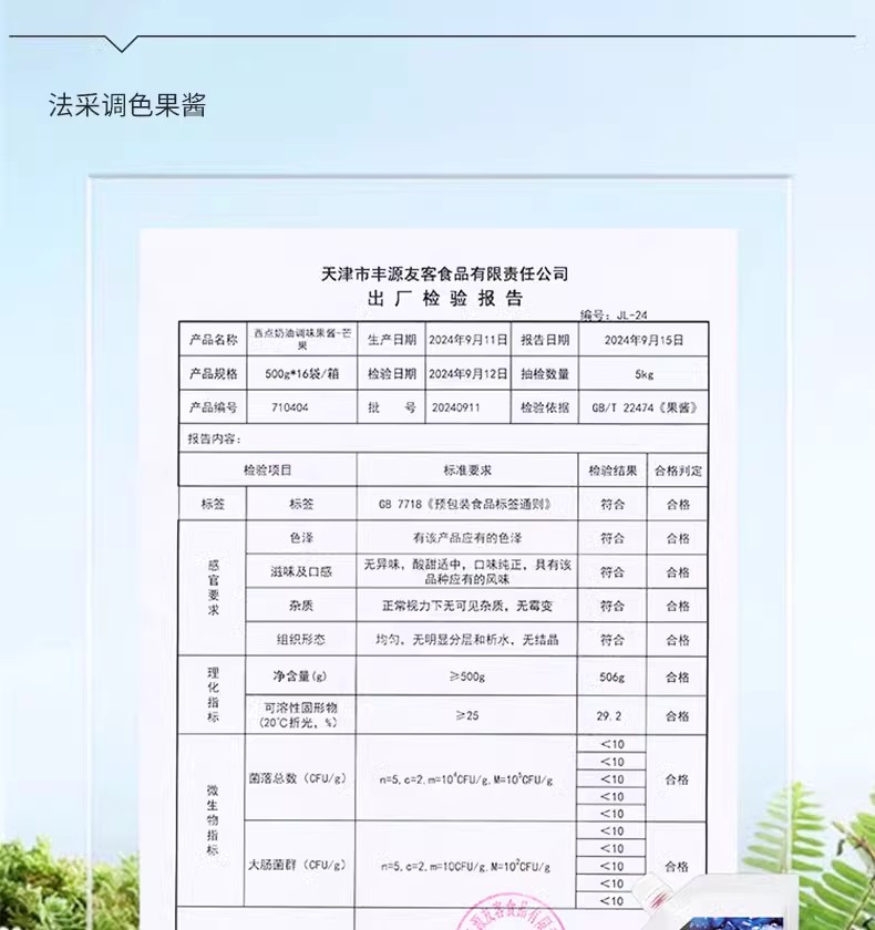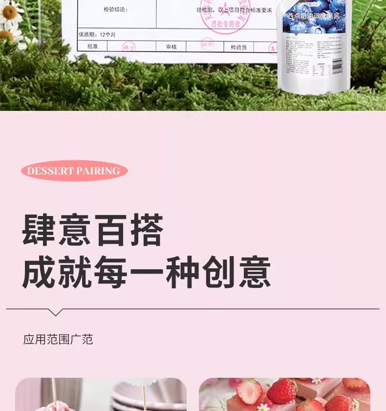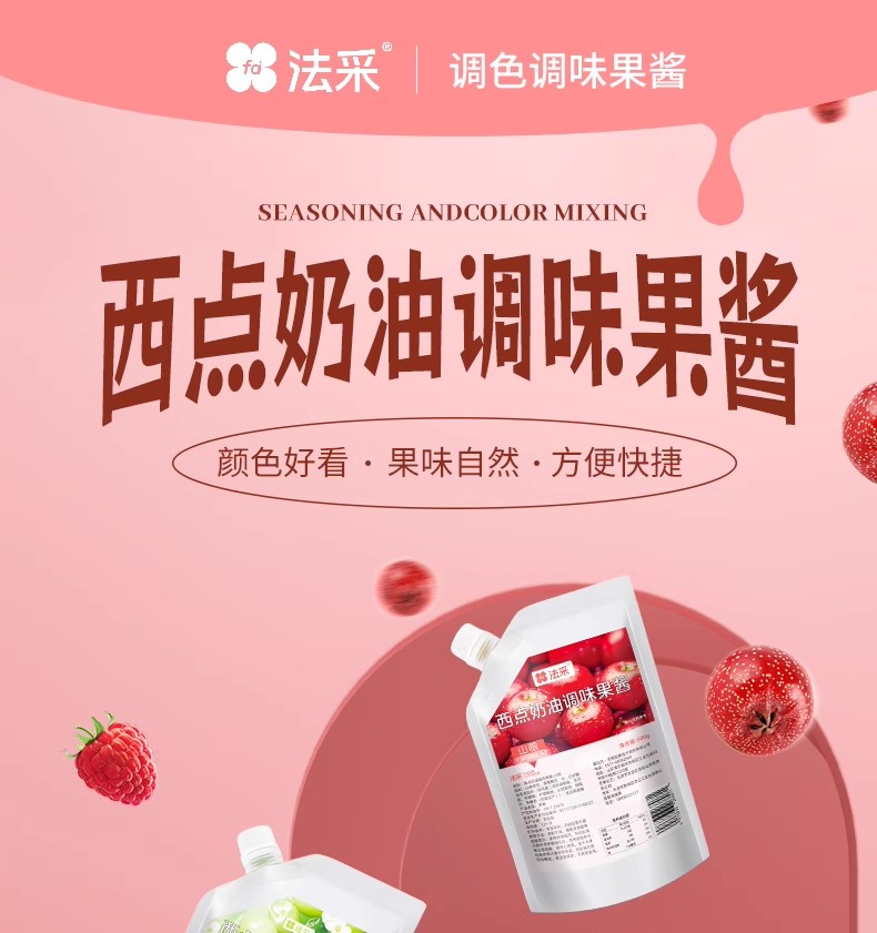 500g 法采西点奶油调味果酱 调色调味 杨枝甘露蓝莓草莓等口味 麻糍面包西点奶油蛋糕用