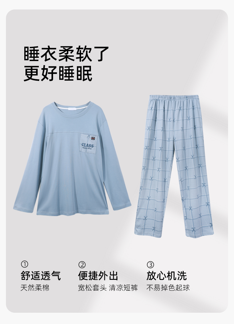 熳洁儿 纯棉男士家居服圆领长袖套装商场同款23703916