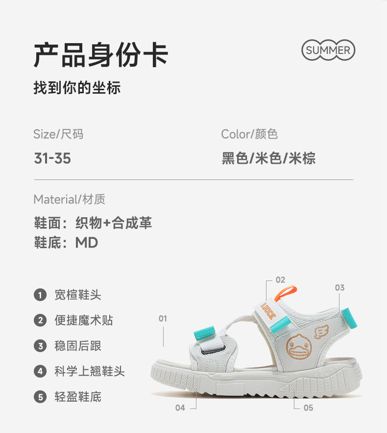 B.Duck小黄鸭童鞋夏季儿童凉鞋31-35 B2485002