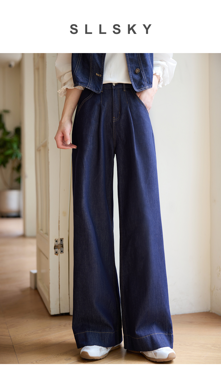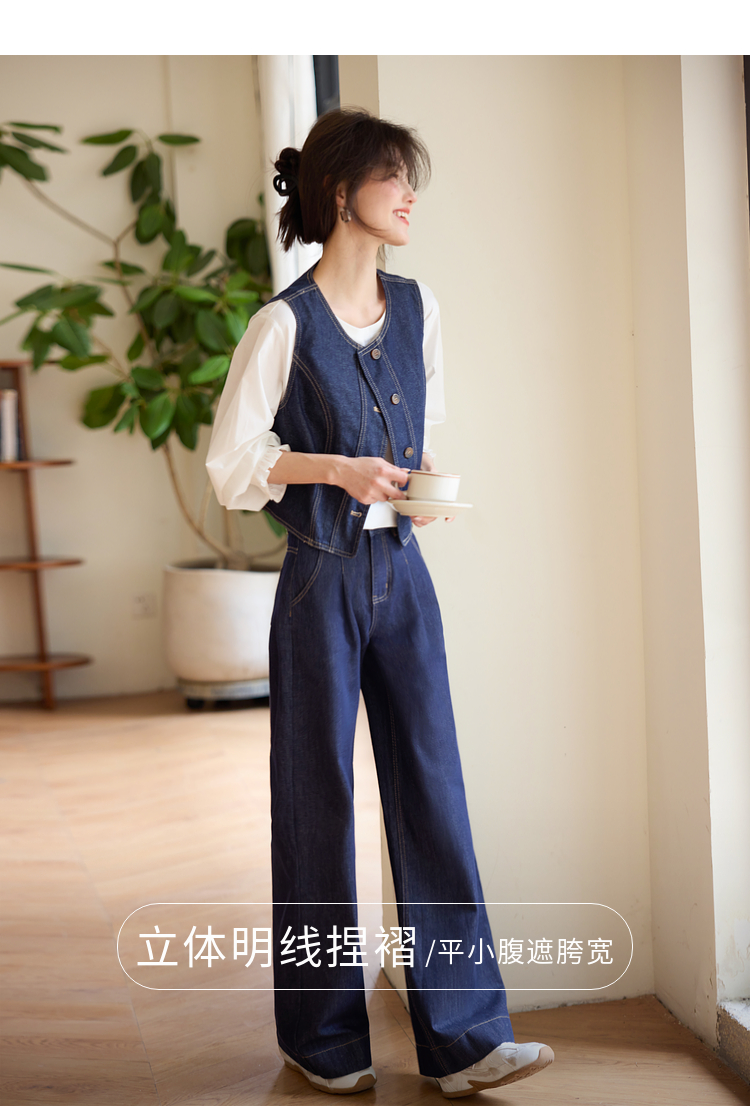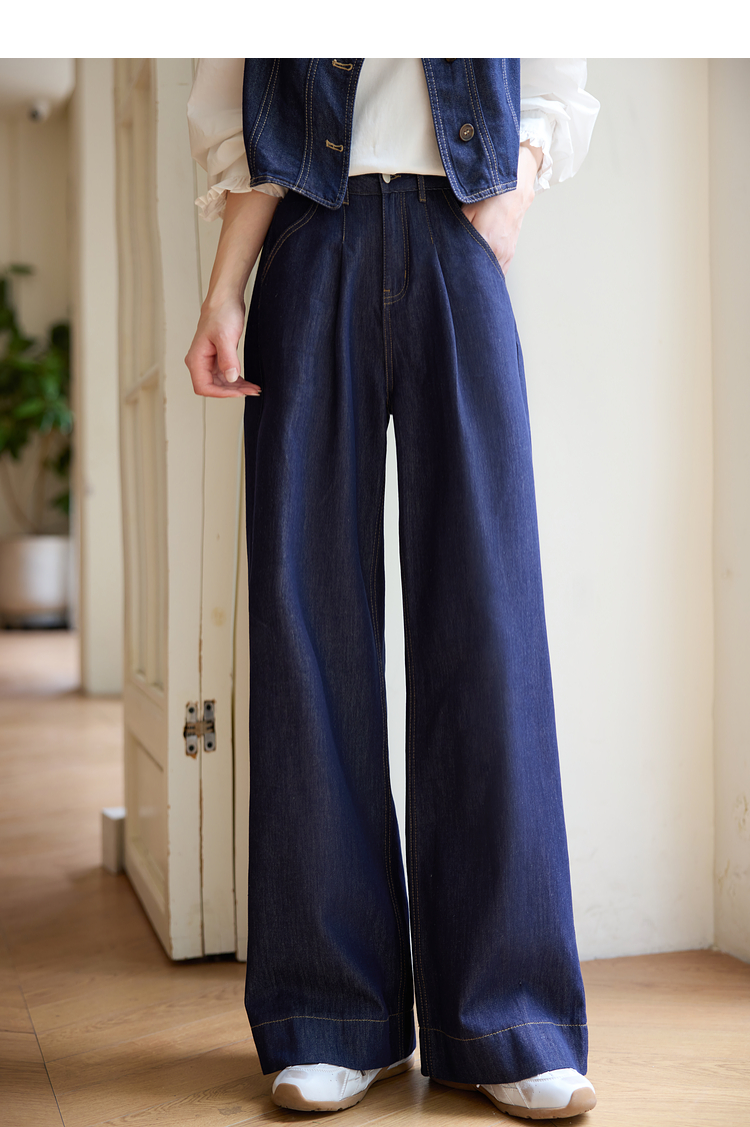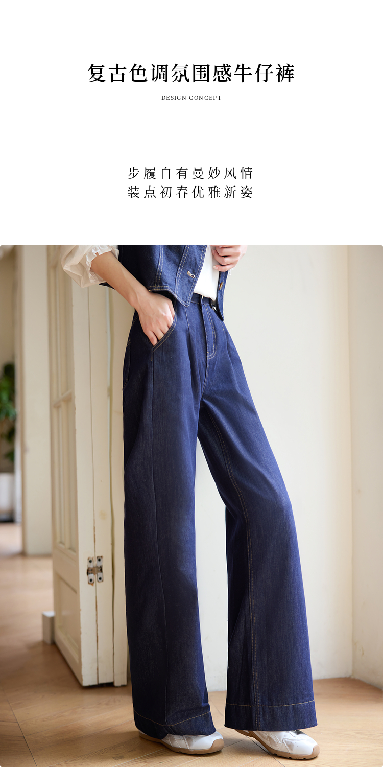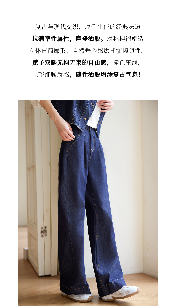 【专属特价】熙世界复古原色牛仔裤阔腿裤女春秋2025新款休闲宽松显瘦直筒裤子