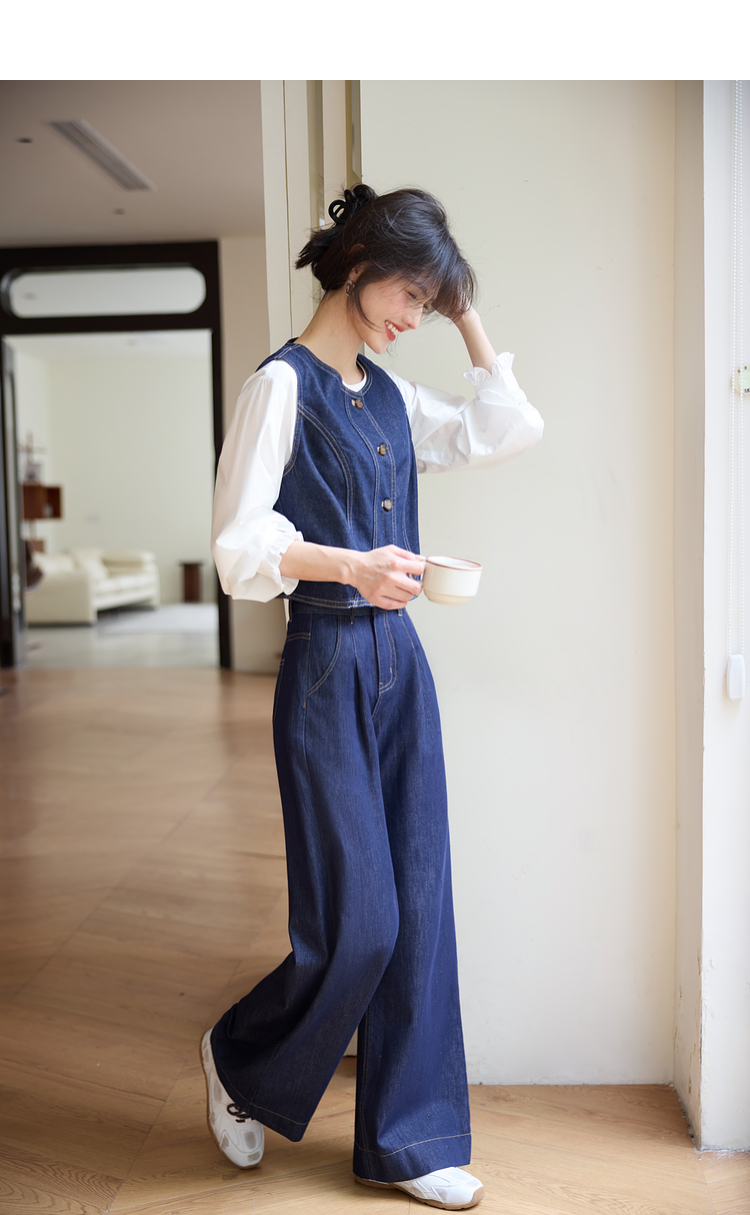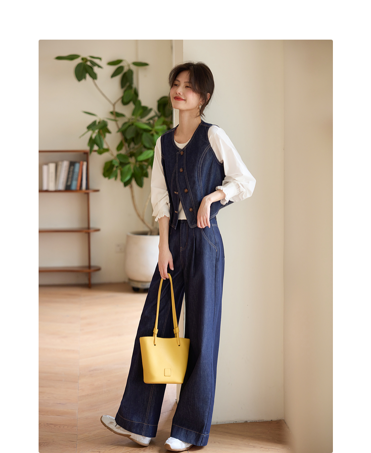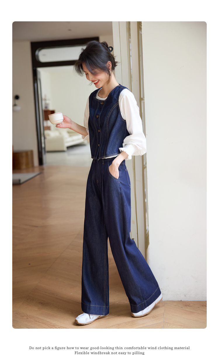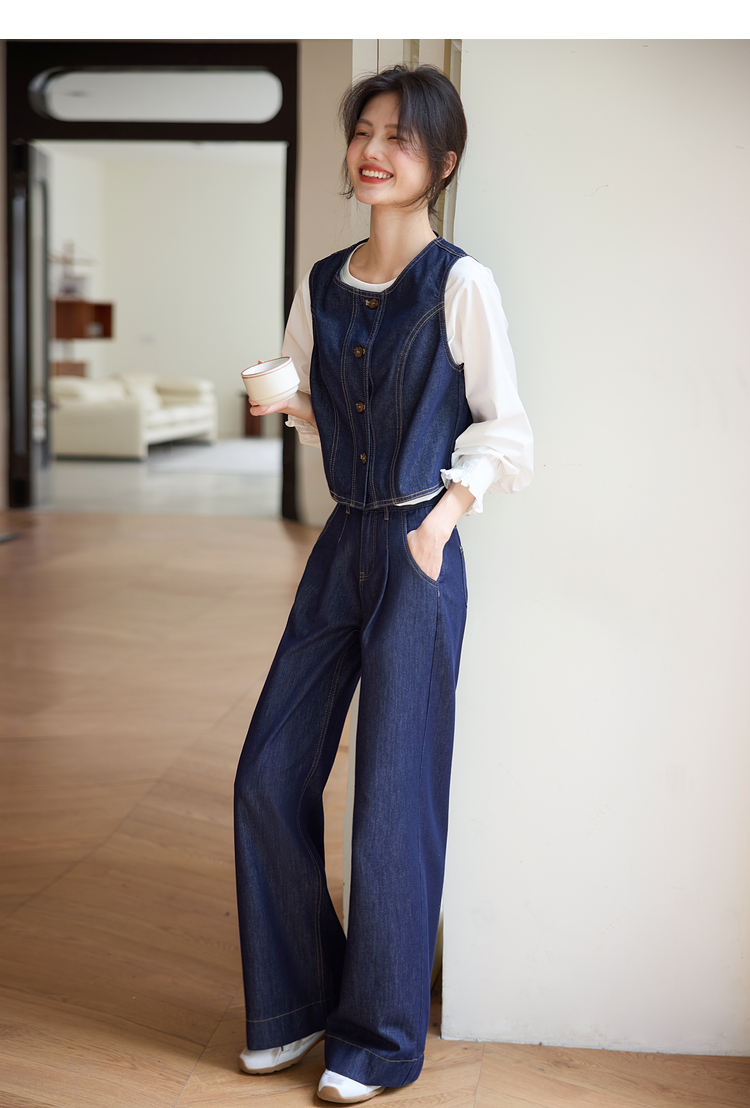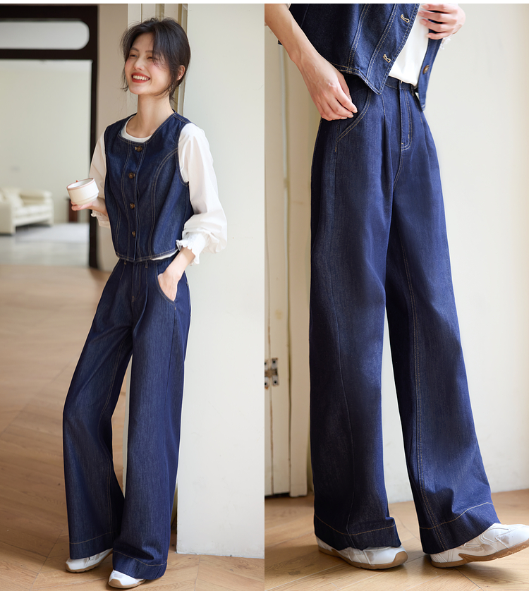 【专属特价】熙世界复古原色牛仔裤阔腿裤女春秋2025新款休闲宽松显瘦直筒裤子