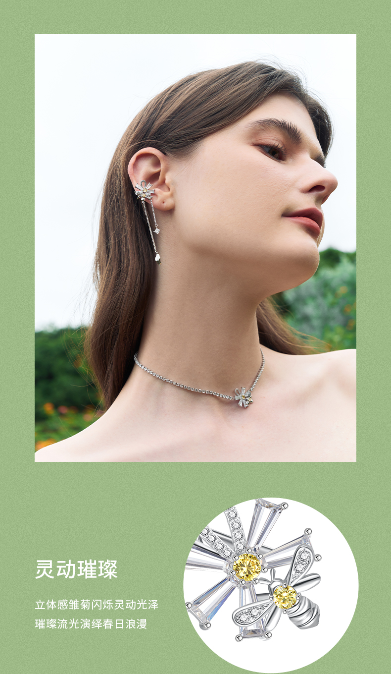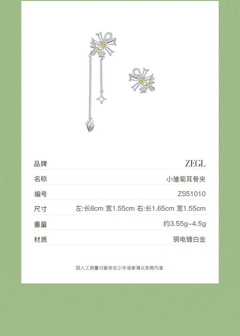 ZEGL设计师雏夏系列小雏菊蜜蜂耳环耳夹无耳洞女新款耳骨夹耳饰品