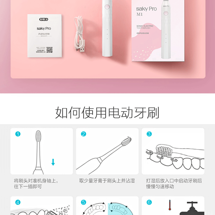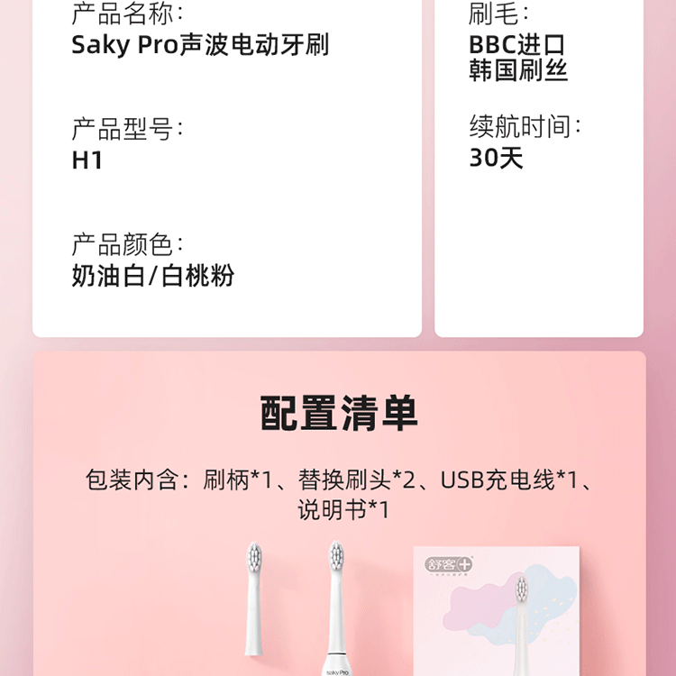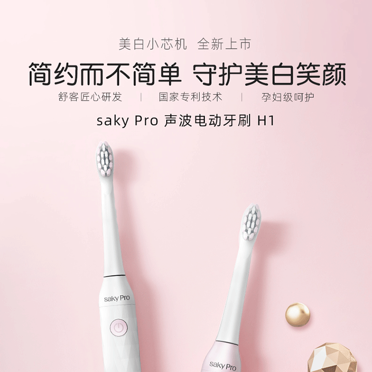 舒客(Saky)电动牙刷 成人声波充电式震动牙刷 软毛防水H1电动孕哺期可用 奶油白