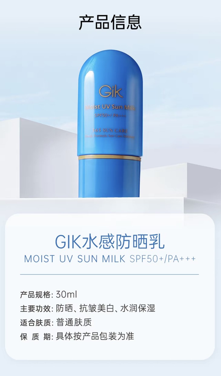 优选 | GIK水感防晒霜30ml*2支 韩国原装进口院线级 水感不粘腻