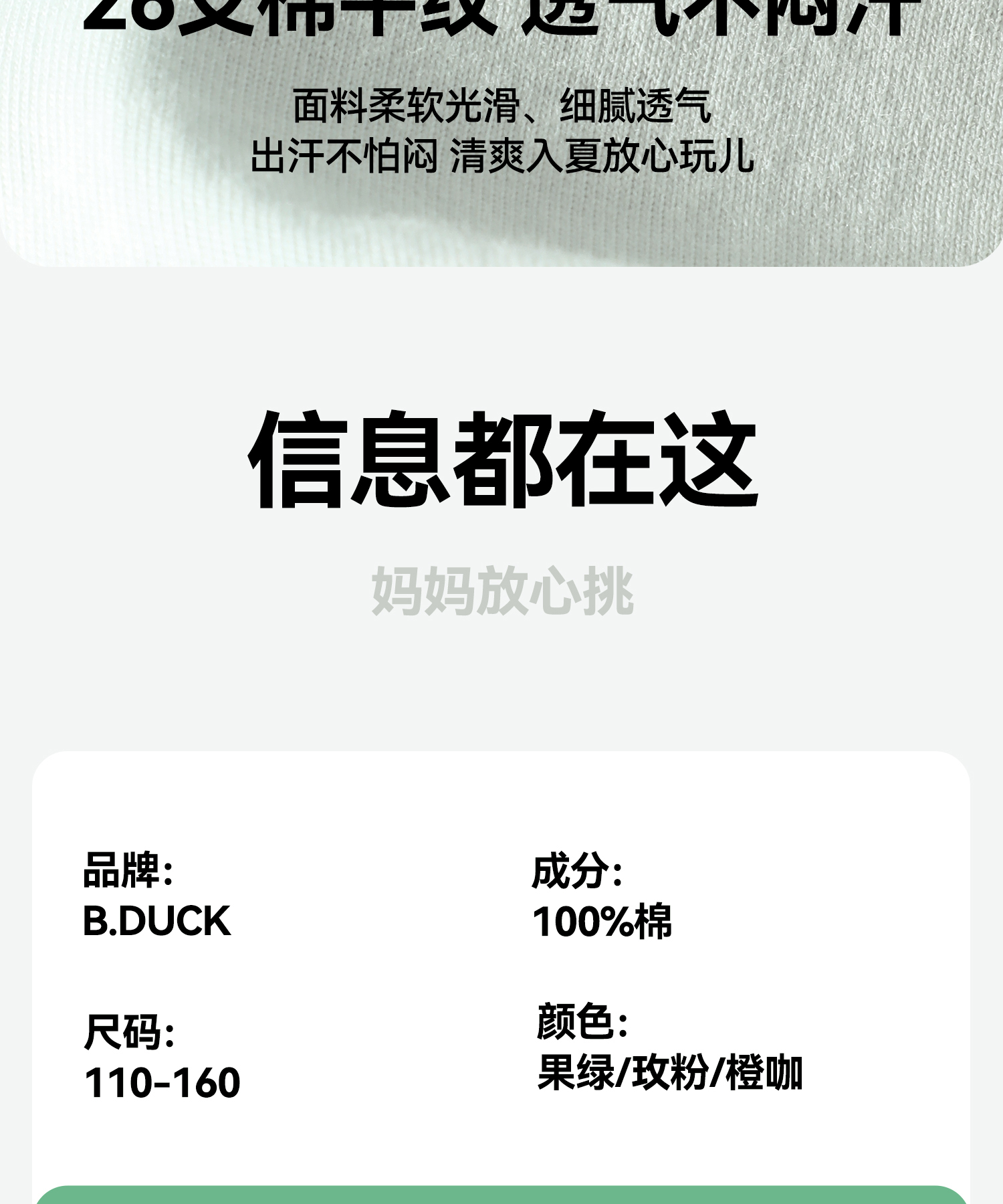 B.Duck小黄鸭童装夏季男女童短T恤110-160 BF2501982