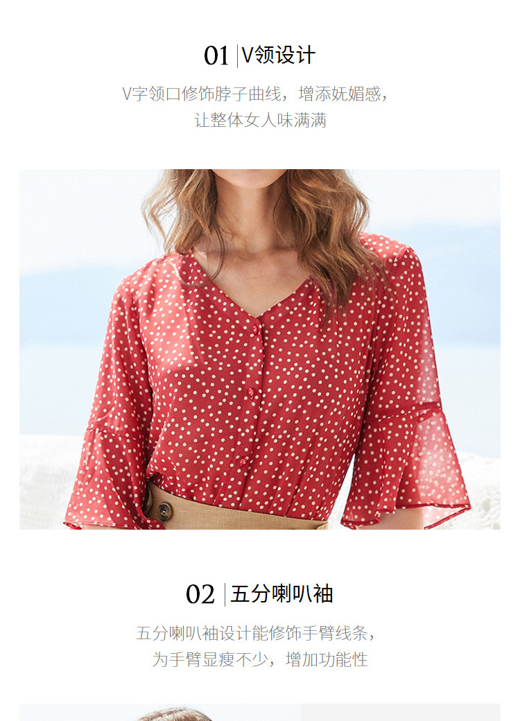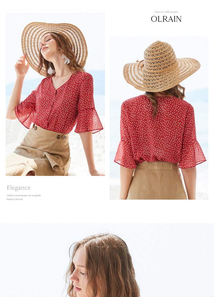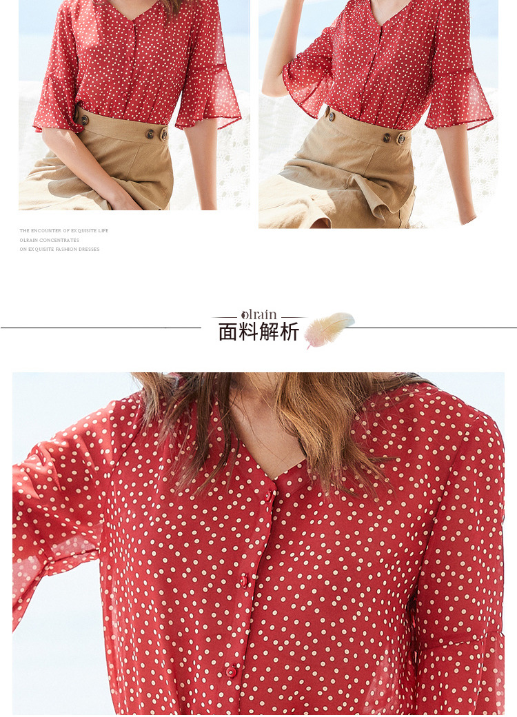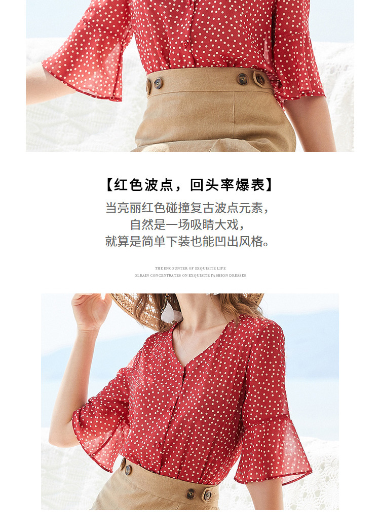 欧芮儿夏2019新款波点V领衬衫女宽松喇叭袖小衫很仙上衣设计感