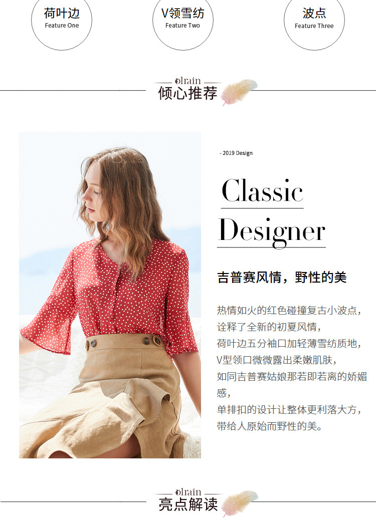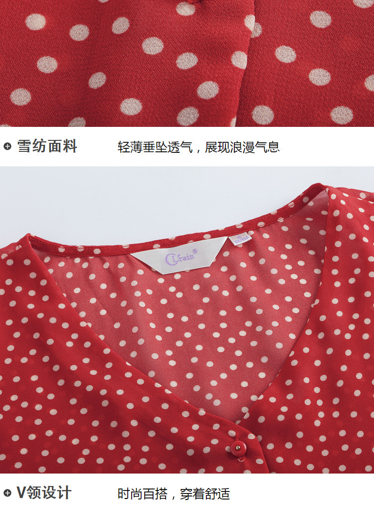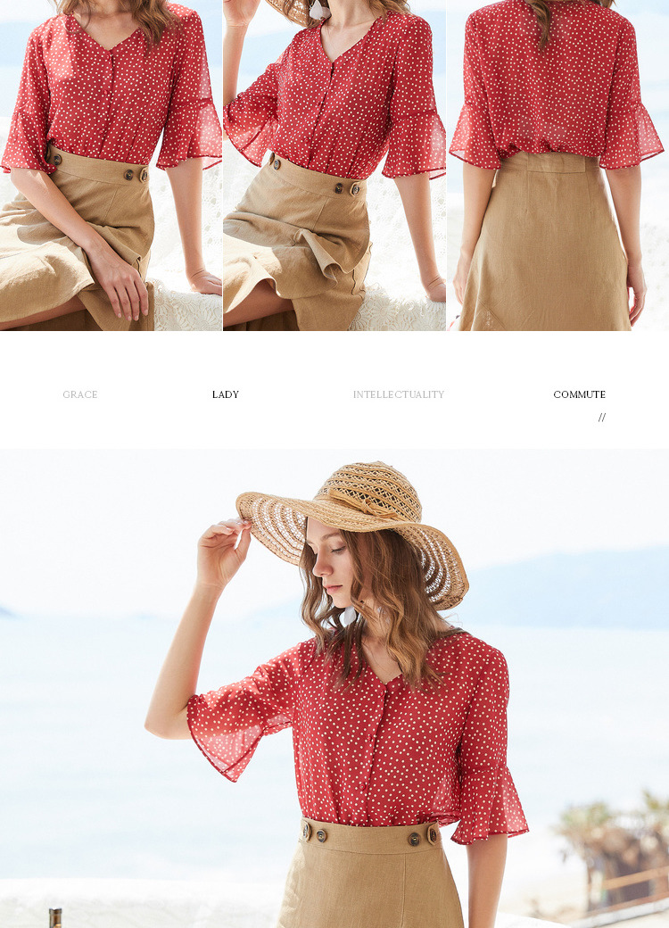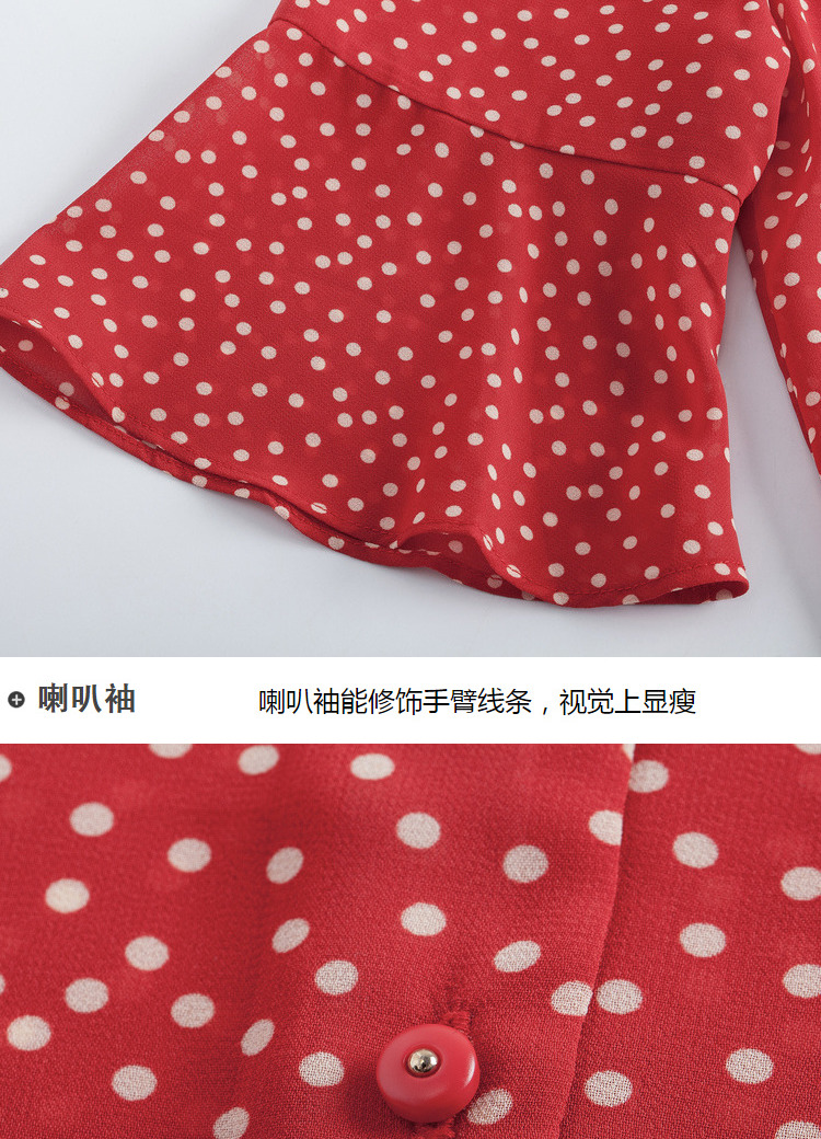 欧芮儿夏2019新款波点V领衬衫女宽松喇叭袖小衫很仙上衣设计感