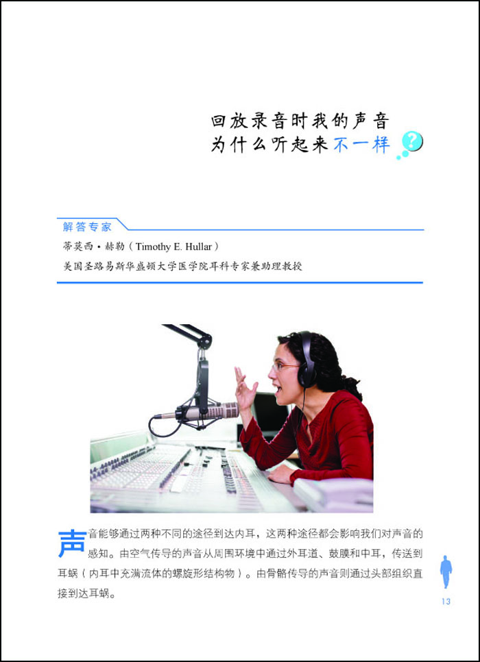 1 你不了解的身体奥秘人脑只利用了10%吗 / 2短期记忆是怎么变为长期记忆的 / 4嗅觉神经元仅能存活60天,但为什么我们很久以后仍记得那些气味 / 6食物的外观或气味是怎么影响味觉的 / 8两种美食混合吃时为什么会变得很难吃 / 10听小骨是怎么传递和放大声音的 / 12回放录音时我的声音为什么听起来不一样 / 13像眼睛这样的复杂器官是怎么进化而成的 / 15人的眼睛为什么不长在脑袋后面 / 17有什么理论可以解释人类体毛的消失吗 / 19我们的指纹会消失吗 / 21人为什么会长皱纹,怎么延缓或防止皱纹产生 / 23环境温度接近体温时,我们为什么会觉得热 / 25人死后细胞代谢还能维持多久 / 27