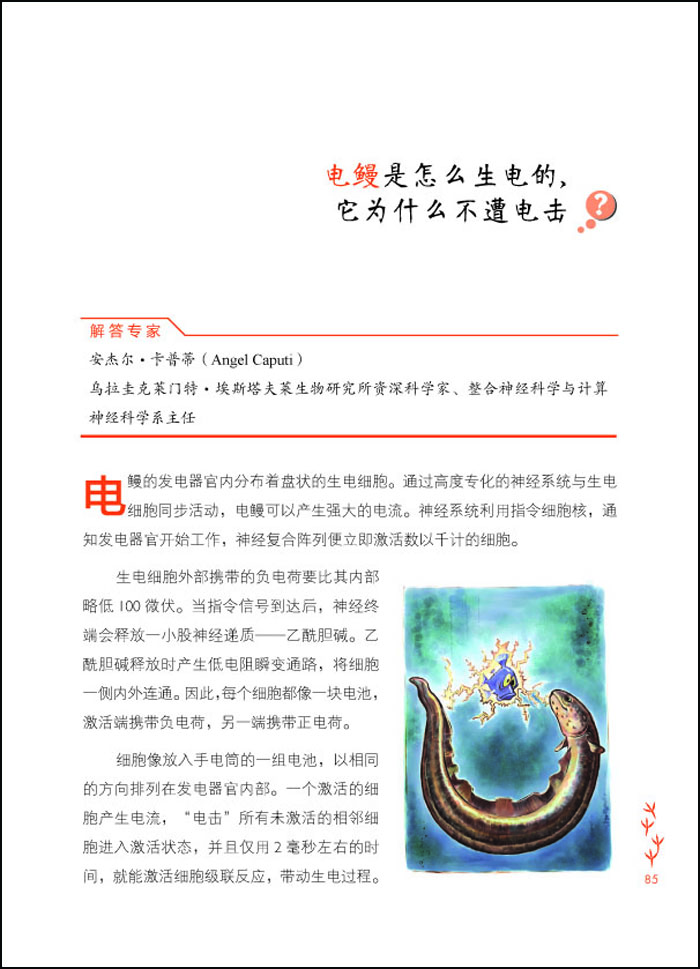 3 道不尽的生物万象室内植物有向光性,那室外树木为什么笔直向上生长 / 66萤火虫为什么会发光 / 68蜜蜂为什么嗡嗡叫 / 70下雨时蝴蝶在干什么 / 72候鸟为什么以人字队形飞行 / 74鹦鹉为什么会学舌 / 75猫为什么有内眼睑,它有什么用 / 76猫薄荷为什么会诱使猫科动物发情 / 78海贝壳和蜗牛壳是怎么形成的 / 79同一种鱼为什么会分布在相隔遥远的不同湖泊之中 / 81鱼是怎么洄游到出生时的那条溪流产卵的 / 83电鳗是怎么生电的, 它为什么不遭电击 / 85海洋哺乳动物为什么不会冻死 / 87鲸为什么会搁浅自杀 / 89