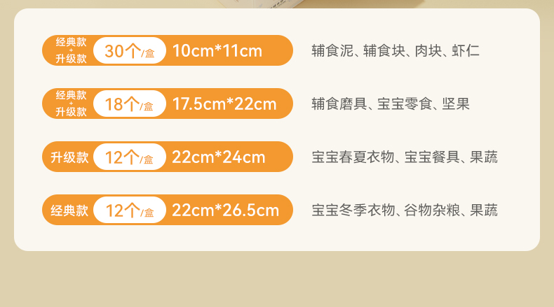 辅食密封袋食品级保鲜袋宝宝家用收纳储存冰箱冷冻分装袋