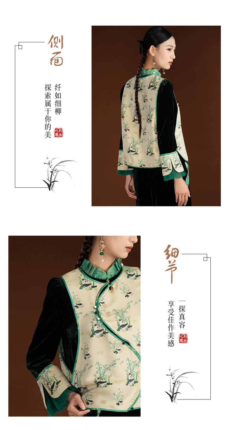 吉祥衣家高端复古中国风熊猫背心新中式气质女装太极轻甲马甲