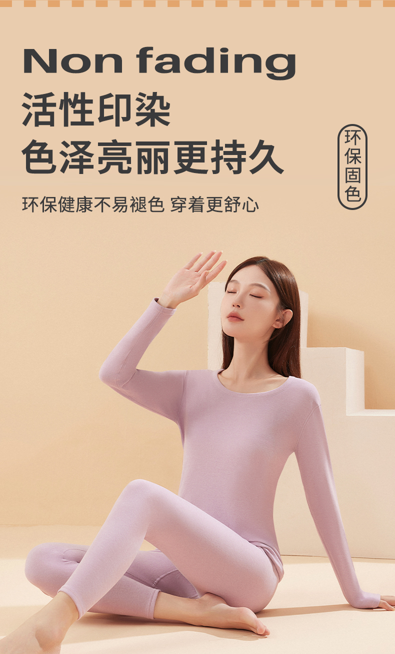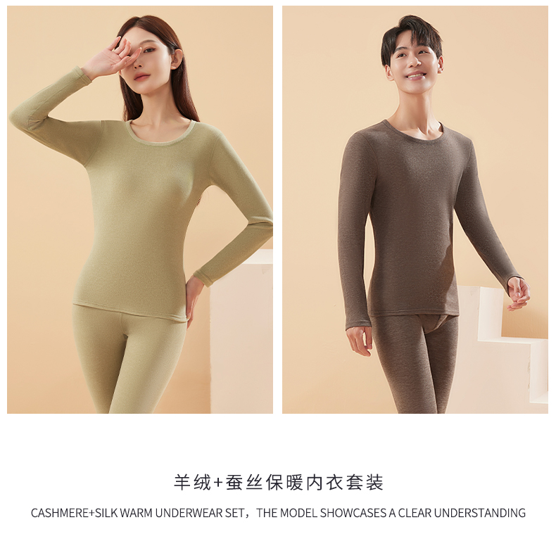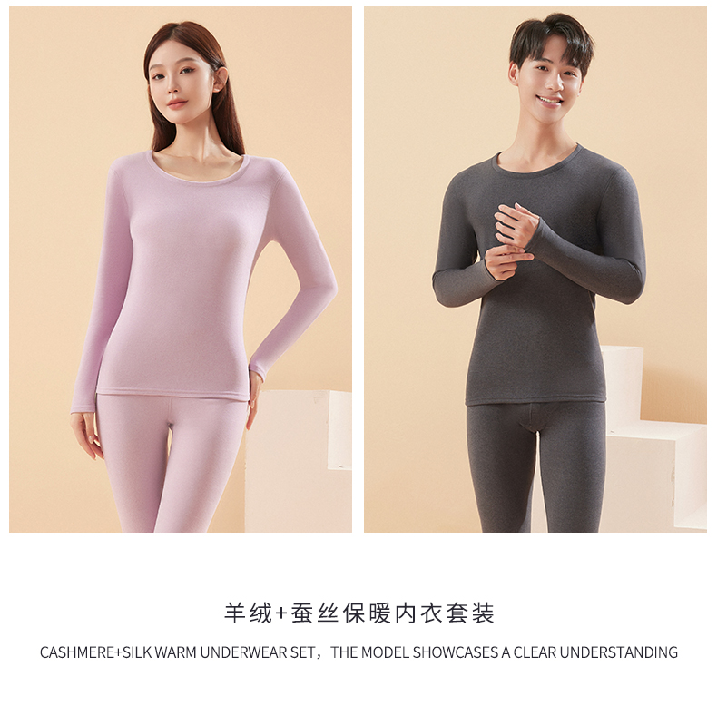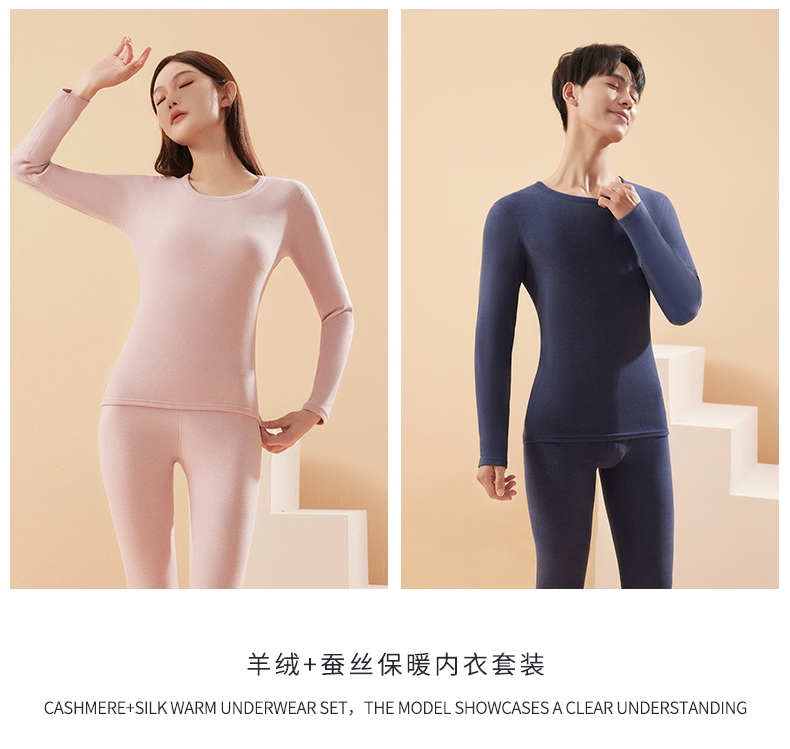 这款保暖内衣拿在手里就能感受到它非凡的品质和做工,真的是非常软fufu,软软糯糯,像棉花糖那样。还添加了蚕丝和山羊绒的优质面料,上身即暖!
