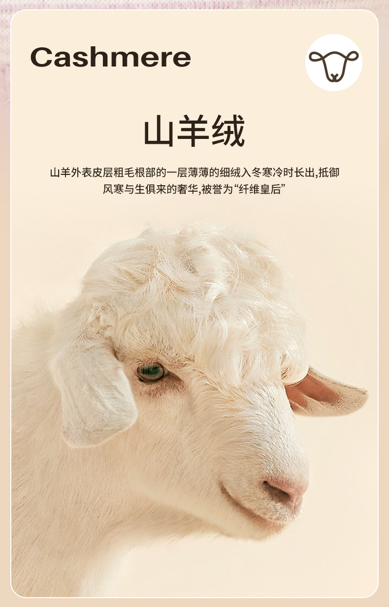 要知道羊绒的产量非常稀少,平均五只山羊绒才能做一件羊绒衫,被称作服饰界的“软黄金”!所以不要觉得含量少,这足以蓄热保暖。