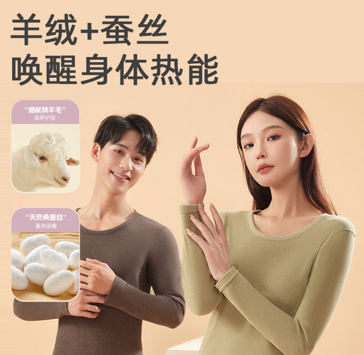 趁活动也别忘了给家里人也买一套,既抵得住南方的魔法攻击冷,也扛得住北方的物理攻击冷,一件T恤的钱,到手羊毛+蚕丝绝对到手不亏!
