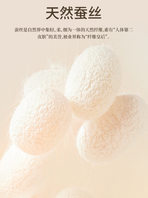 桑蚕丝富含18种人体所需氨基酸,被称为“人体的第二层肌肤”。冬天在暖气房里也不怕闷得皮肤难受,可以把身体的汗湿排出体外