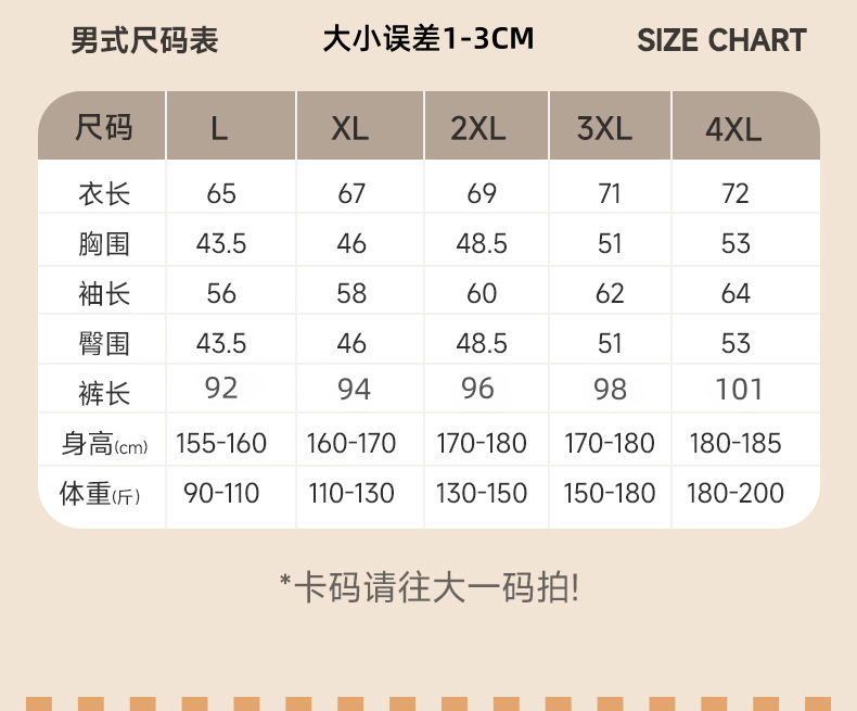 男款,尺码L-4XL,无论是壮汉还是瘦麻杆也ok~