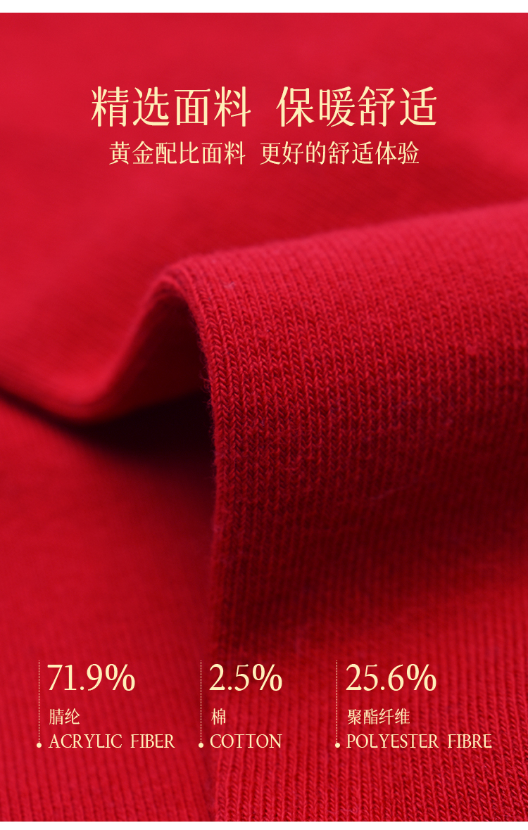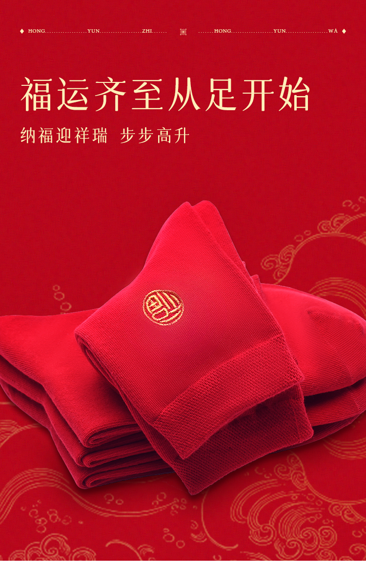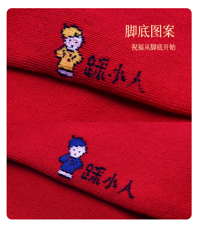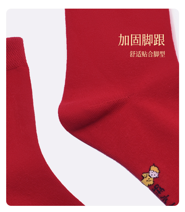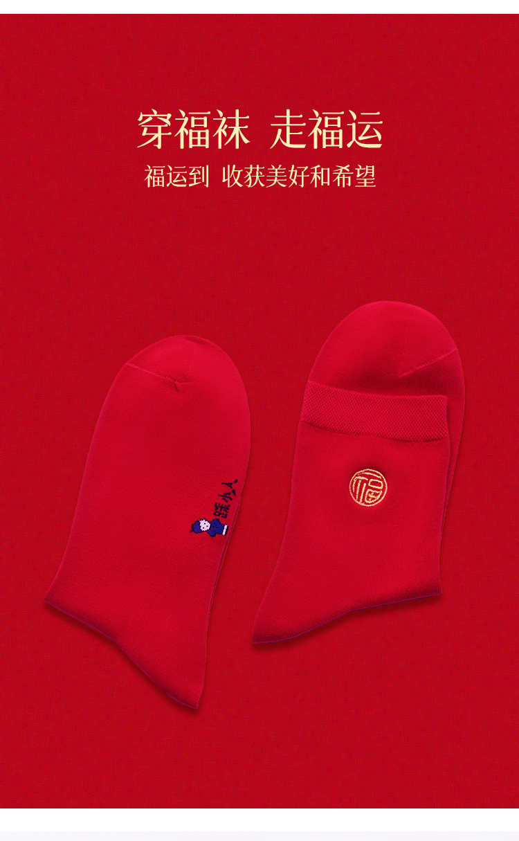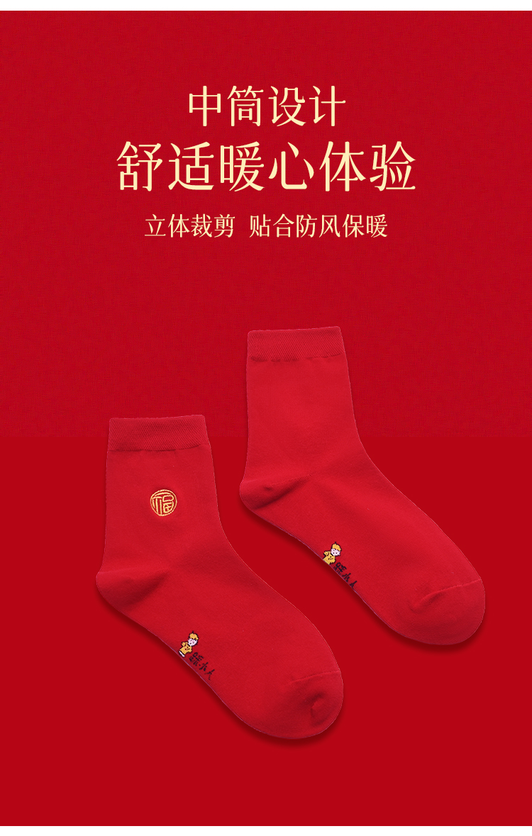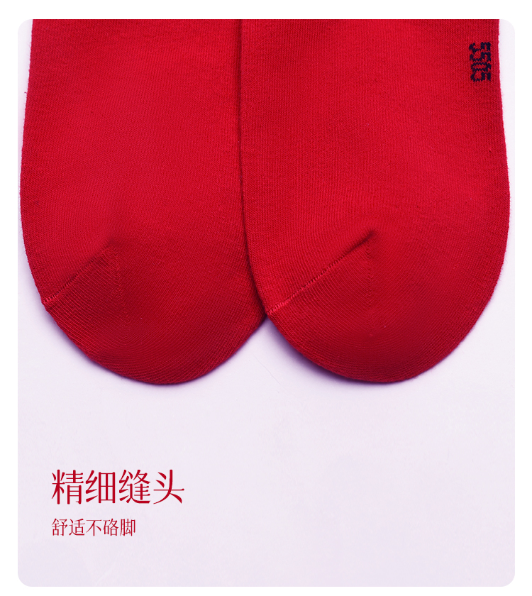 红色棉袜本命年新年红袜男女同款秋冬棉袜简约纯色吸汗WZM3379/WZM3408