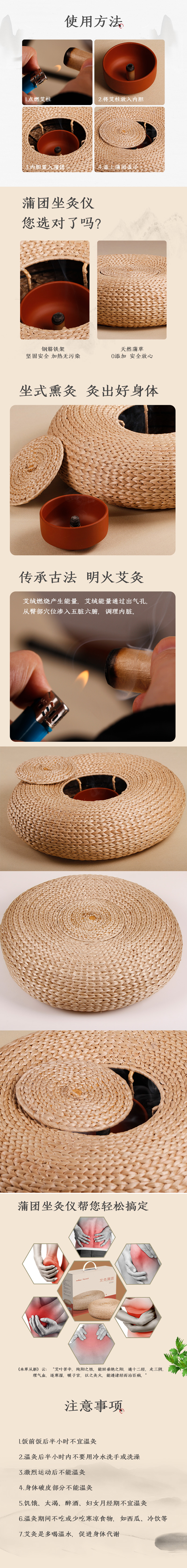自营(卓护)-海氏海诺蒲团艾灸仪坐垫家用熏蒸艾条1套/盒